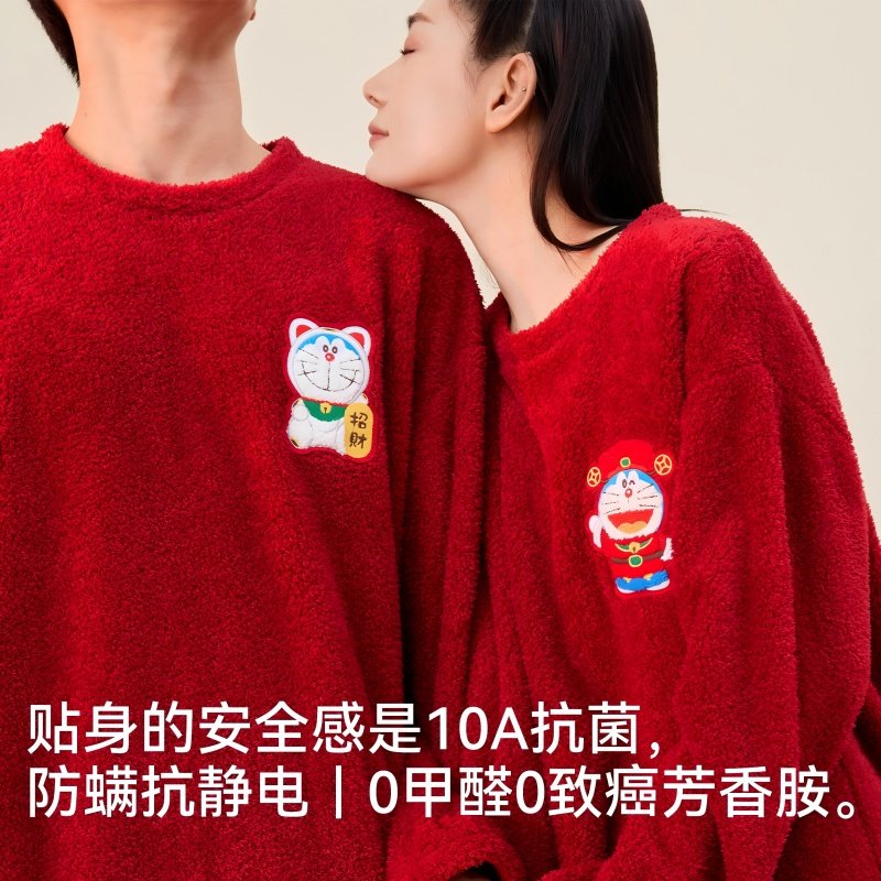【达人专属】猫人暖绒绒哆啦a梦家居服睡衣男女半边绒新款