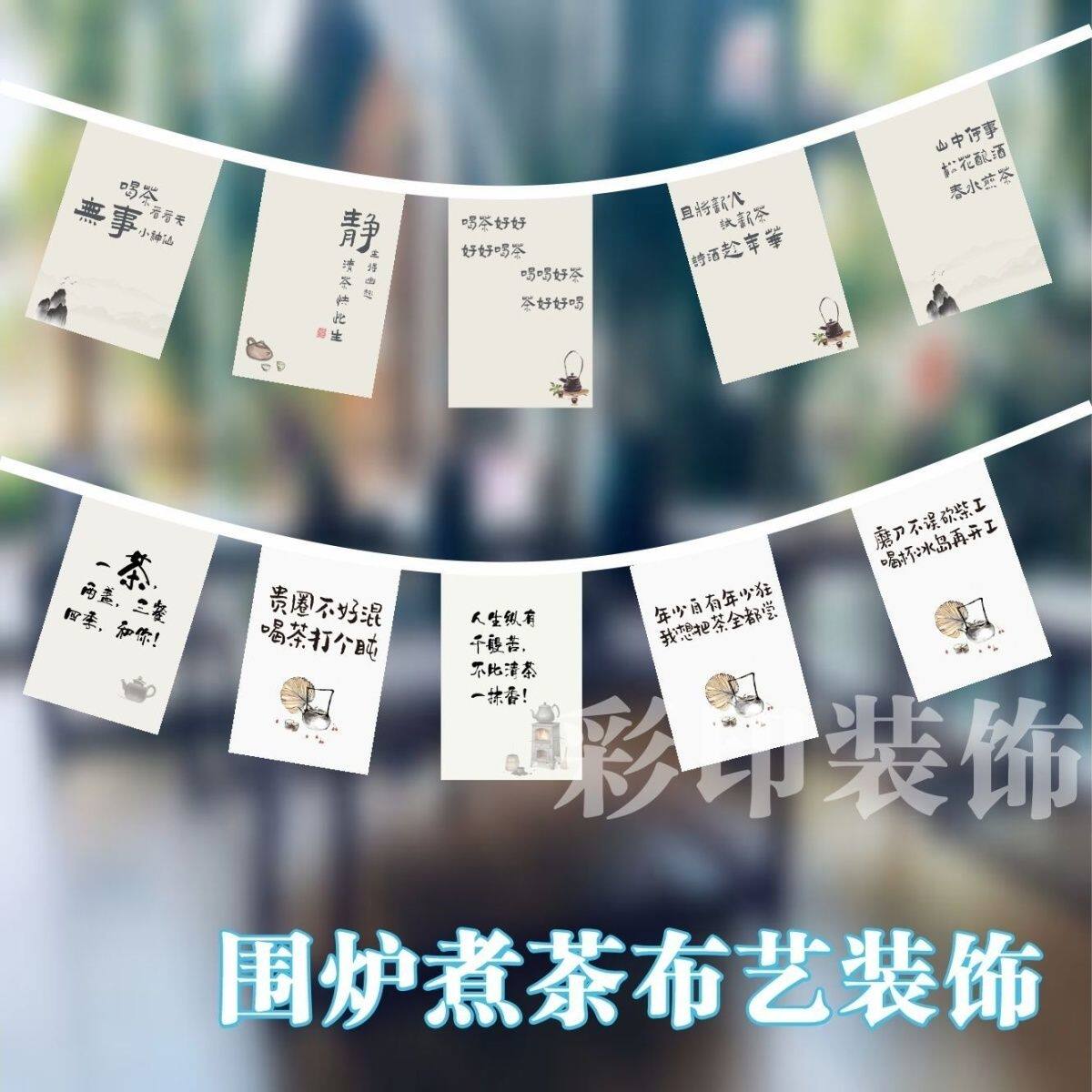 围炉煮茶串旗装饰户外茶室高级感吊顶装修氛围背景墙营地室内装饰