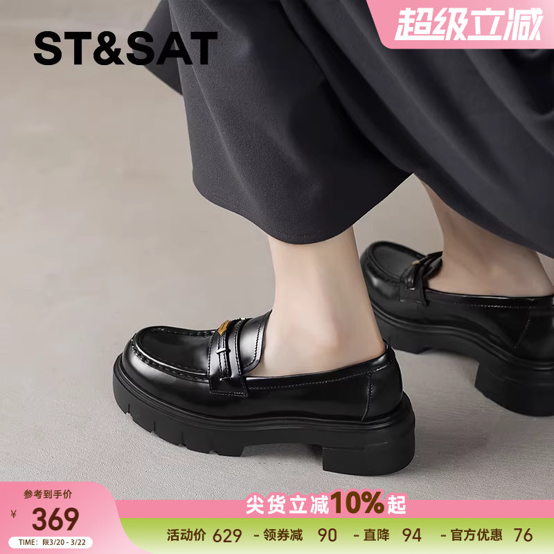 星期六英伦风乐福鞋女2025真皮圆头厚底单鞋粗跟一脚蹬增高小皮鞋