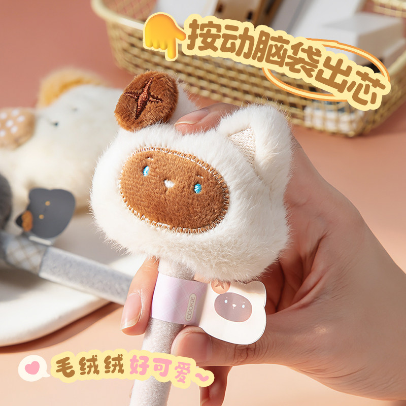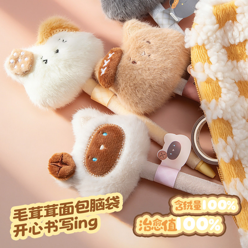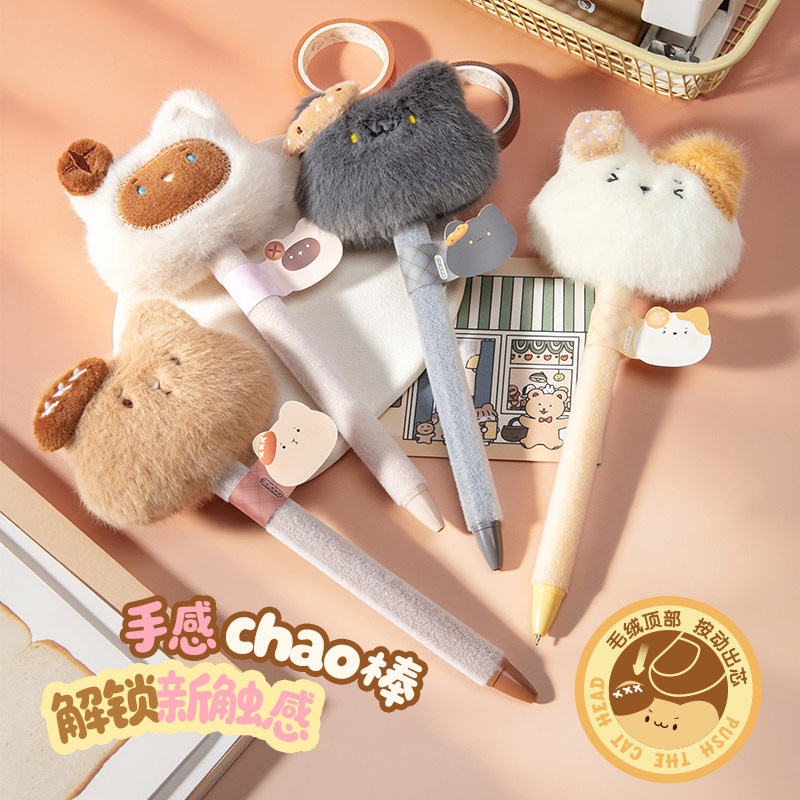 可爱毛绒笔萌宠中性笔高颜值毛茸茸卡通小猫网红女生款创意礼物小学生解压ins高端猫咪黑色水笔圆珠笔签字笔
