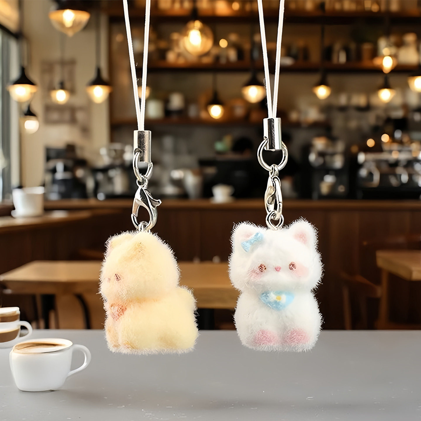 可爱植绒猫咪手机绳立体树脂钥匙链挂件手机挂饰包包情侣闺蜜礼物