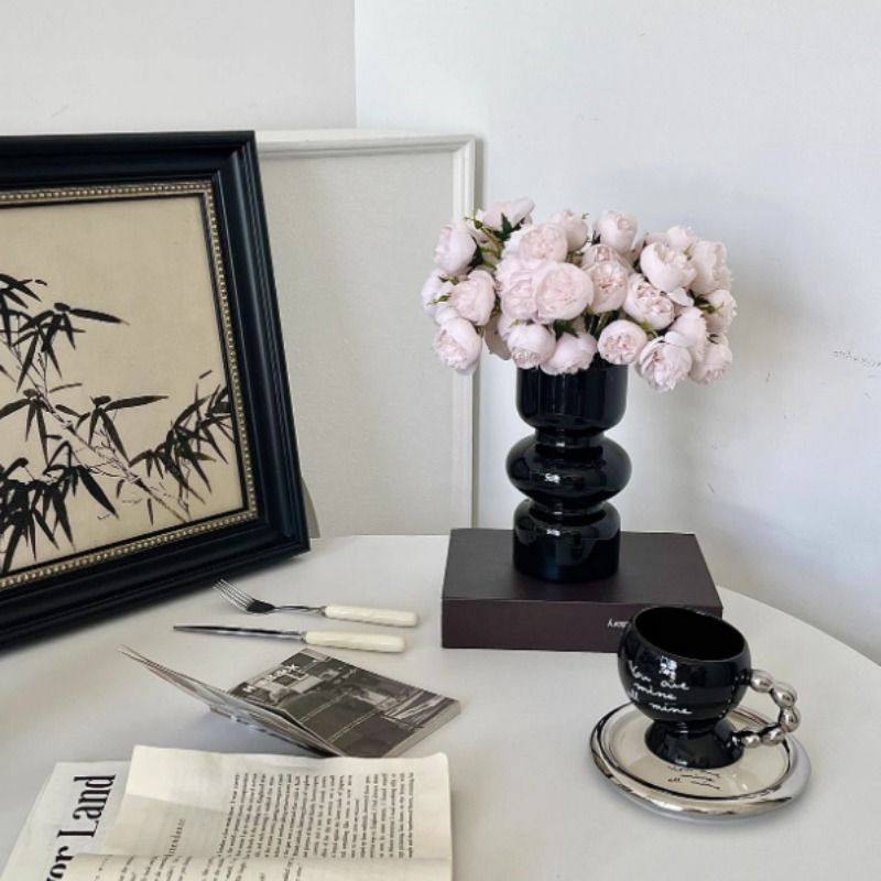 景德镇陶瓷玫瑰花枝仿真花永生花束插花瓶手工摆件装饰节日礼品