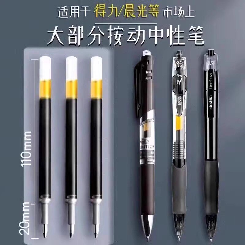 100支按动中性笔笔芯子弹头速干替换芯0.5写字粗笔心学生用按压式碳素水笔芯黑笔摁动批发文具用品送晨光水笔