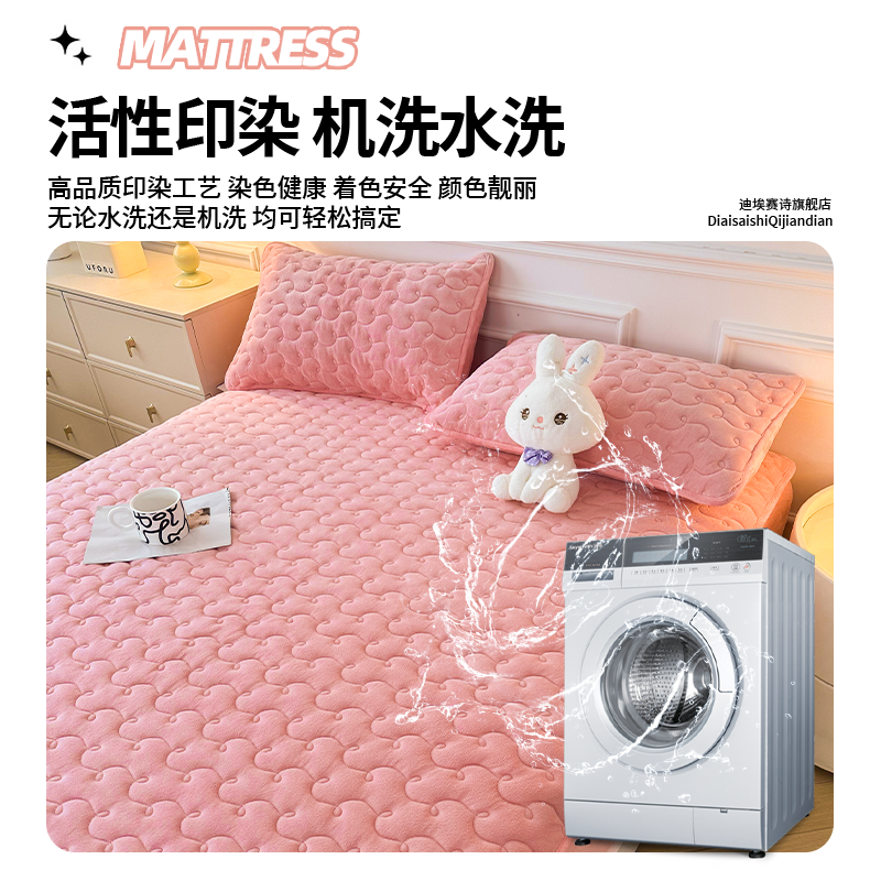 2025新款学生宿舍单人水洗棉夹棉床笠单件床垫保护罩套床单三件套