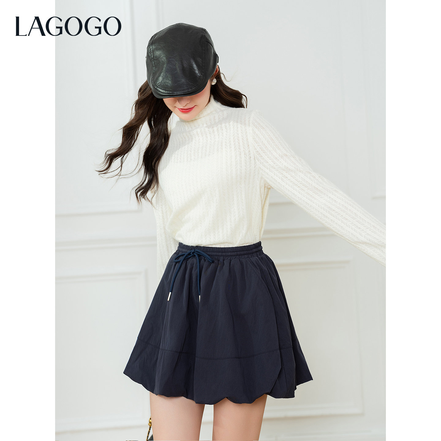 LAGOGO小个子A字蓬蓬半身裙女拉谷谷2026春新款运动休闲花苞短裙
