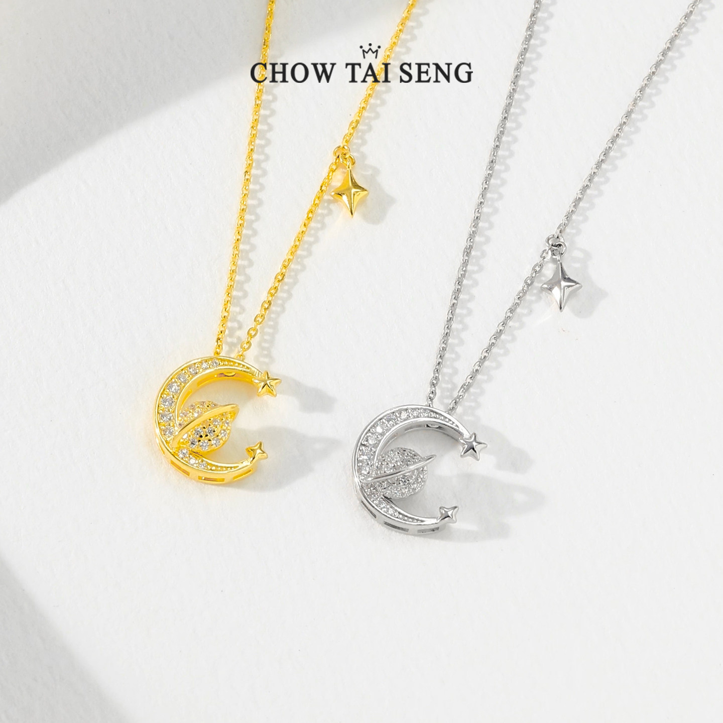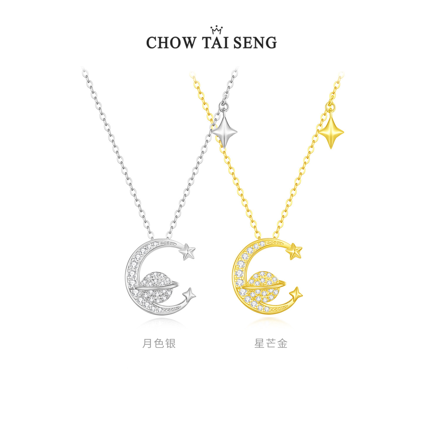 周大生星月流转项链银S925轻奢高级感锁骨链情人节生日礼物送女友