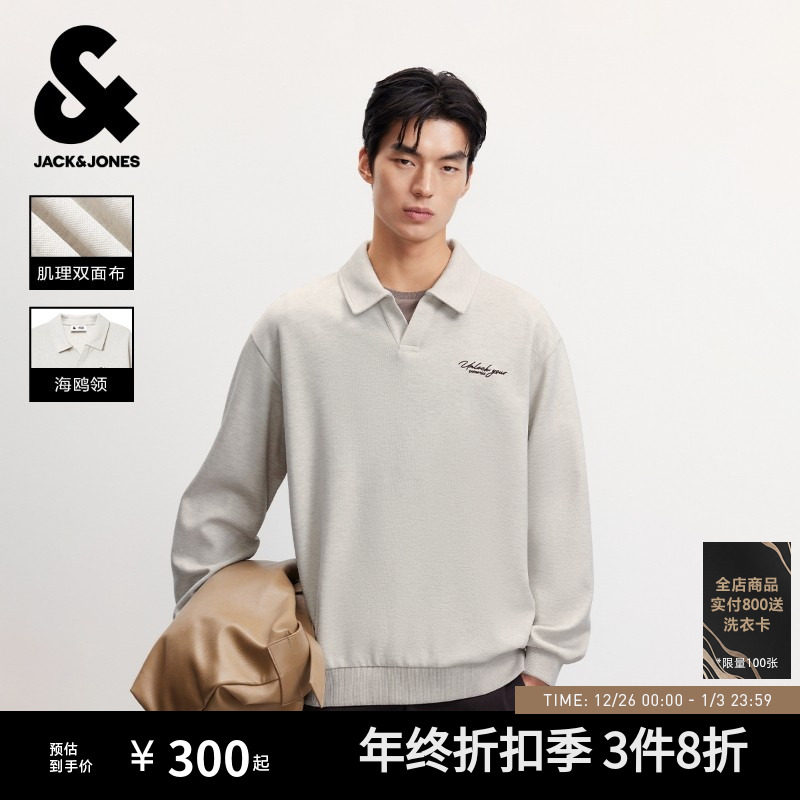 【海鸥POLO领】杰克琼斯男装25年秋季新款宽松纯色刺绣卫衣外套男