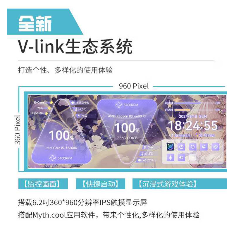 瓦尔基里VK03海景房机箱台式电脑带屏机箱360水冷ATX6.2触摸屏