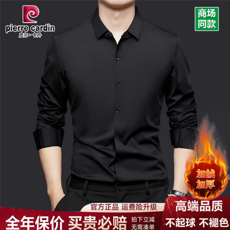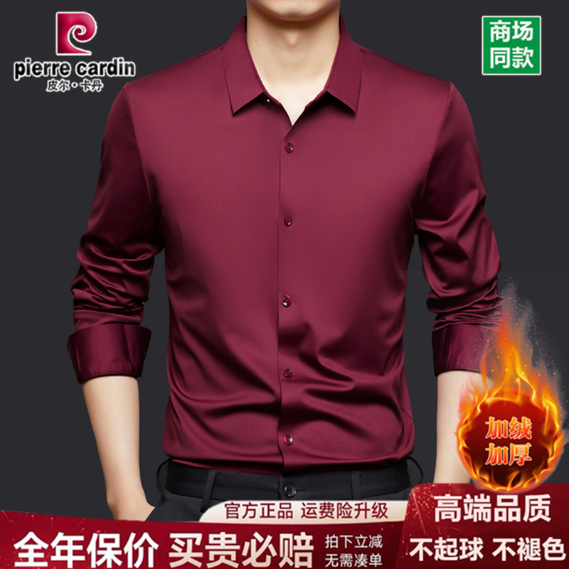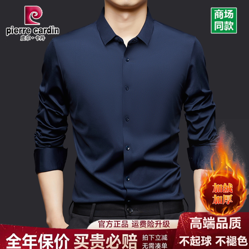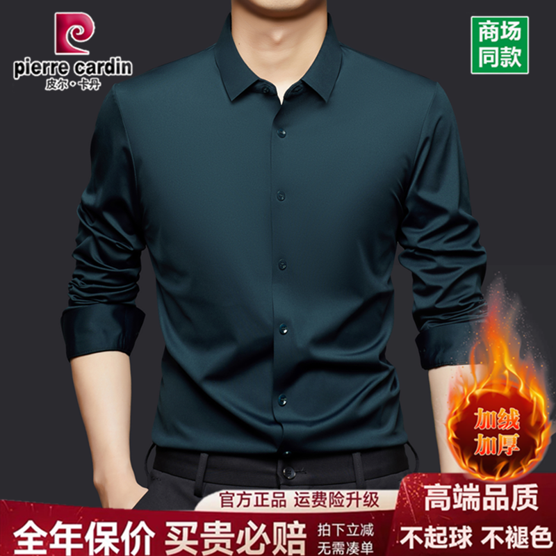 皮尔卡丹2026新款桑蚕丝衬衫男长袖商务休闲免烫加绒加厚保暖衬衣