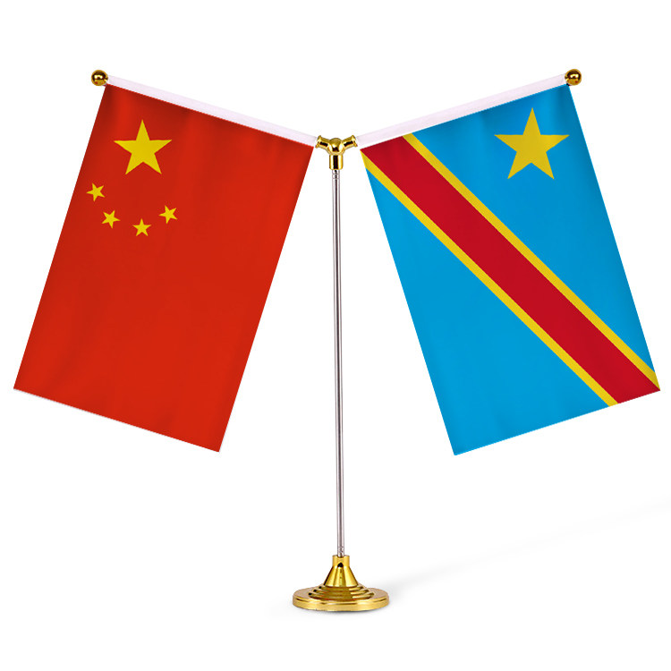 刚果金国旗 Y型双杆旗架 办公室会议室桌旗座 经贸洽谈旗帜摆件