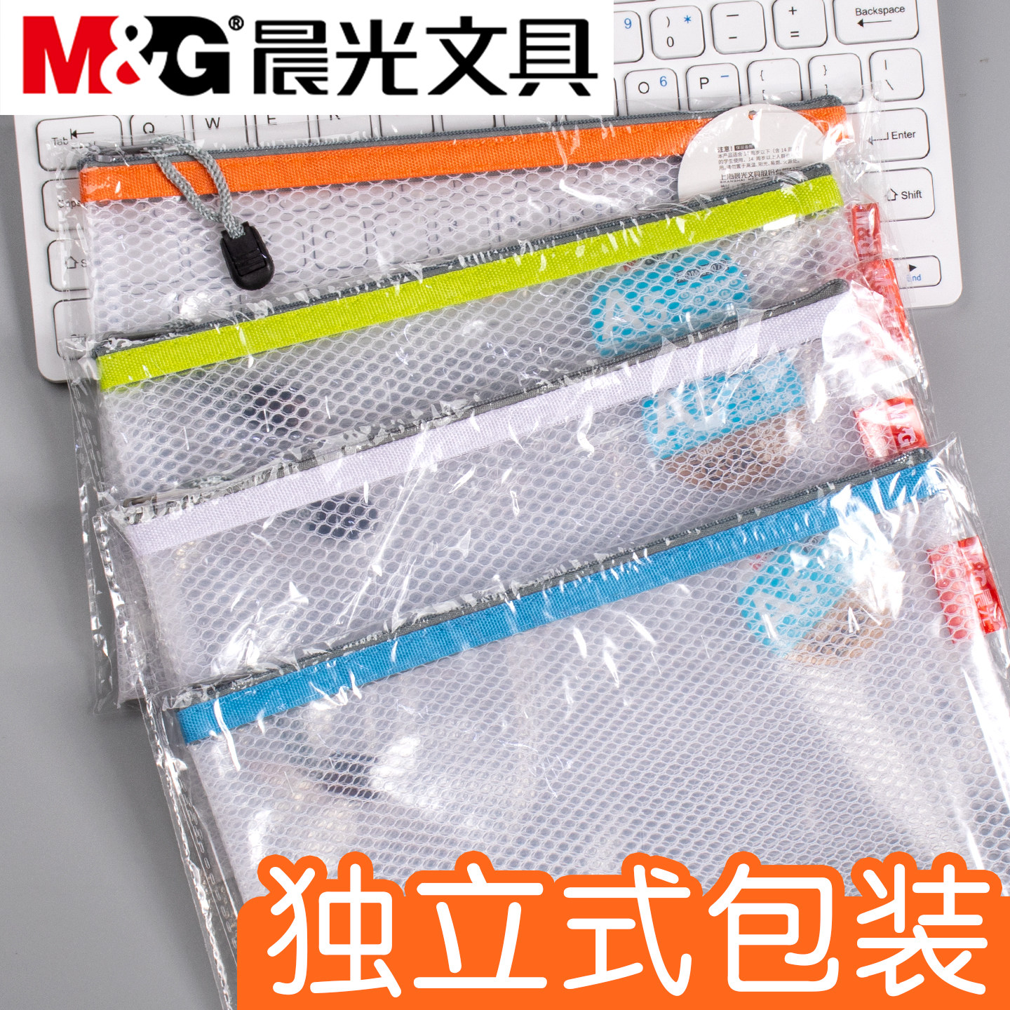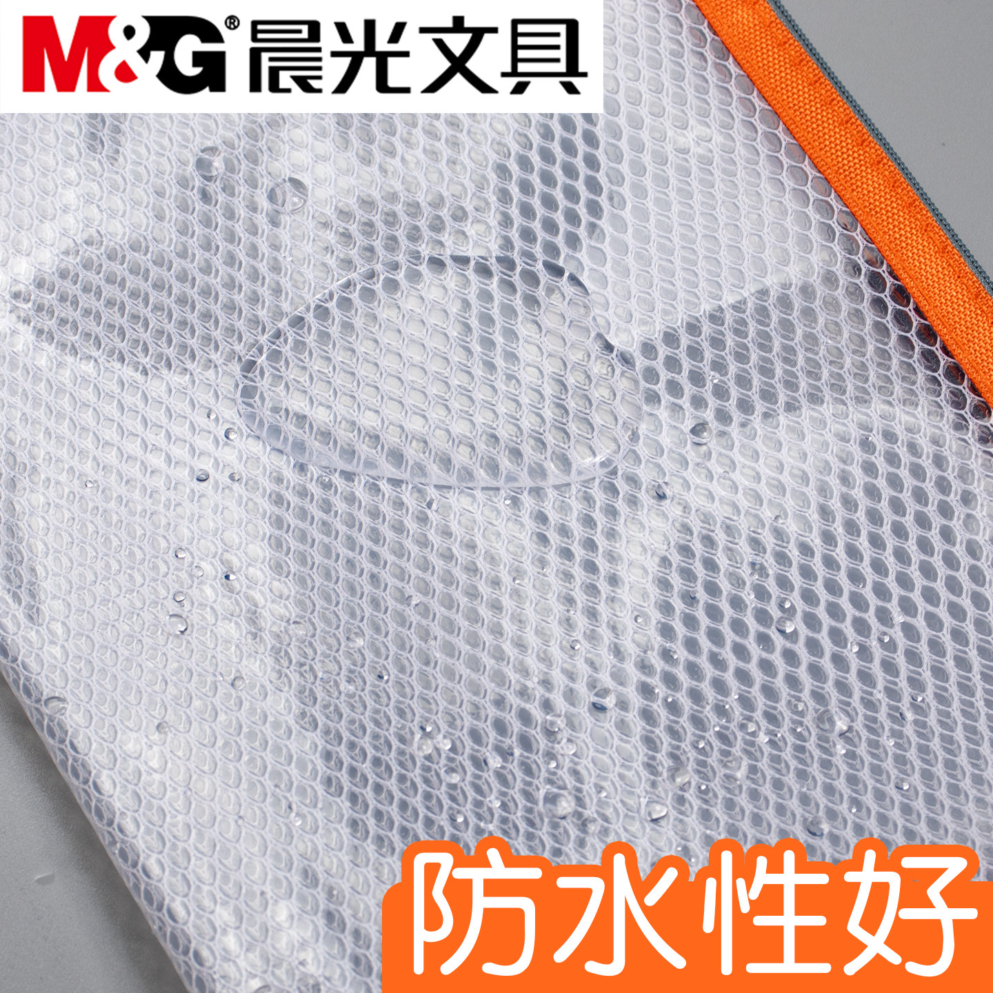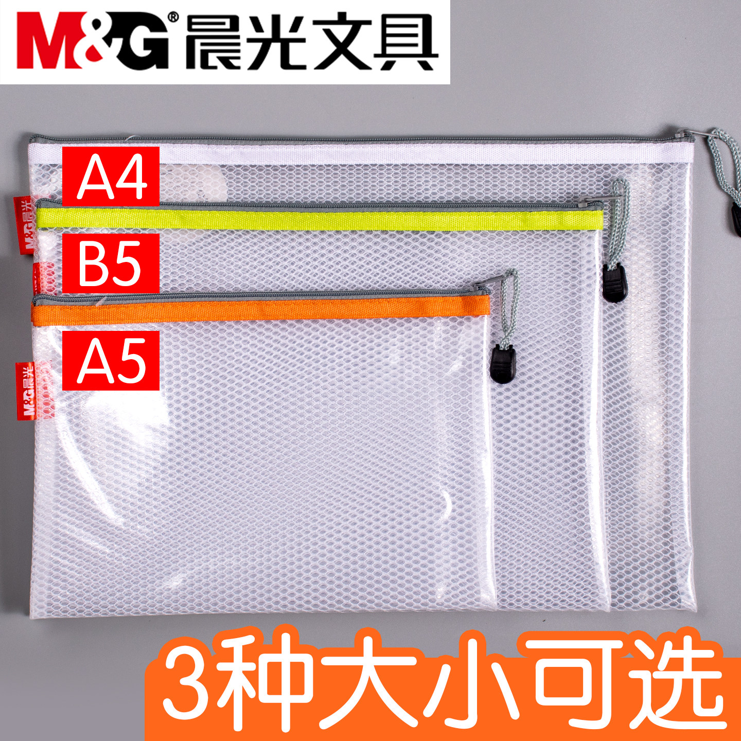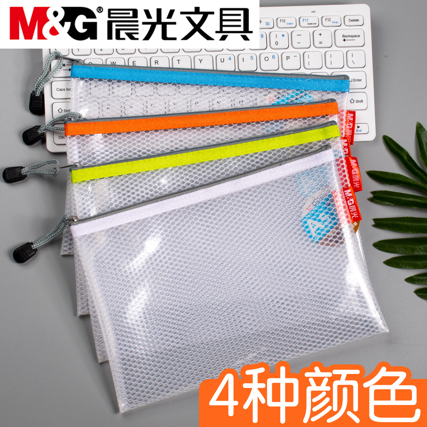 晨光网格拉链袋A5文件资料袋学生用考试笔袋透明防水B5分类收纳袋透明档案袋子试卷袋作业A4票据袋文具袋