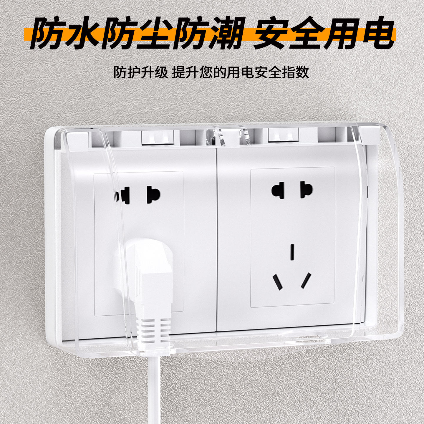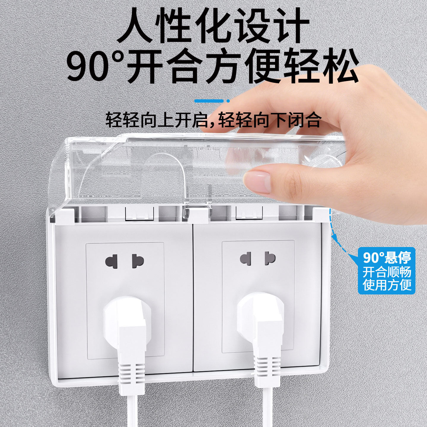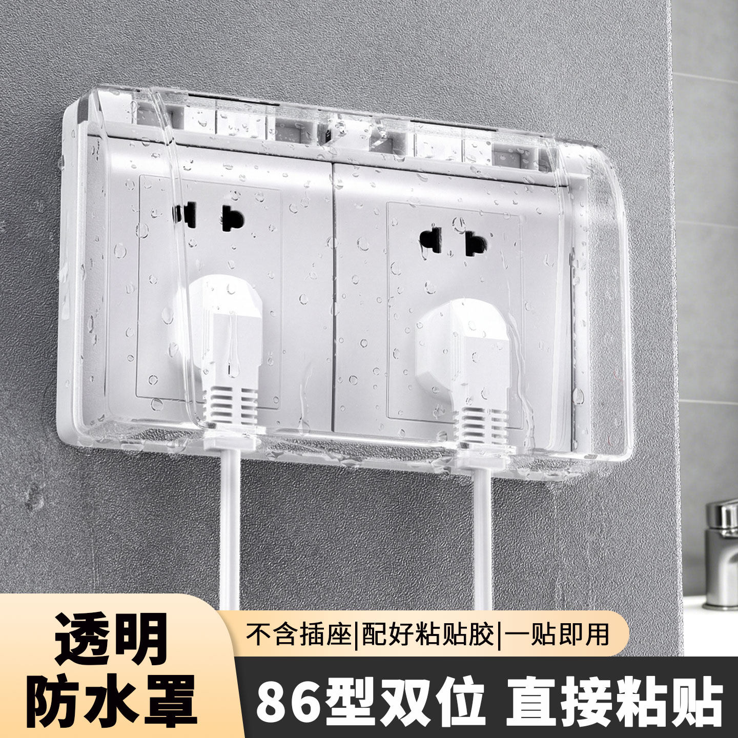 电热水器插头防水罩覆盖式卫生间淋浴房插座防溅水安全保护盒免打孔厨房电源开关单双位防污渍透明密封防护盖