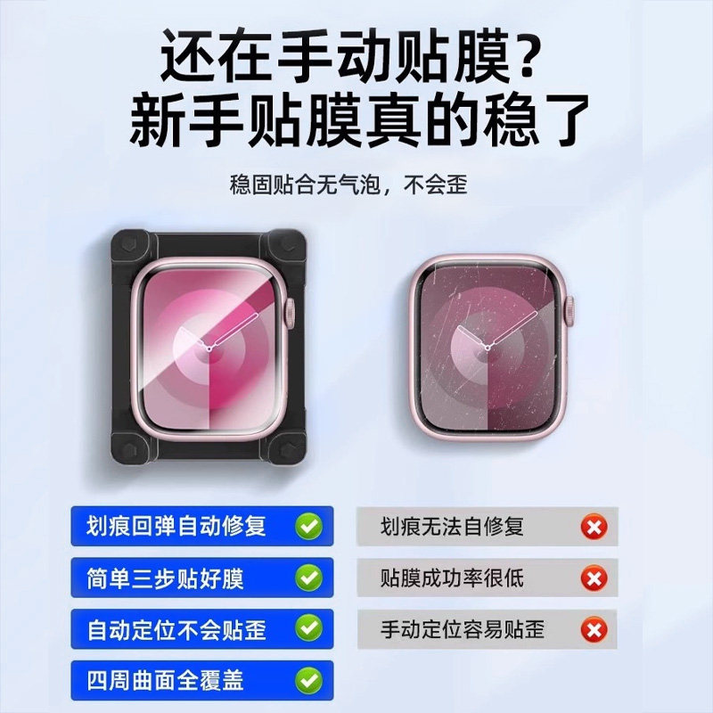 适用苹果手表S11保护膜新款S10手表水凝膜高清AppleWatch软膜全屏贴膜se3带工具iwatchs9/8全包防指纹无尘仓
