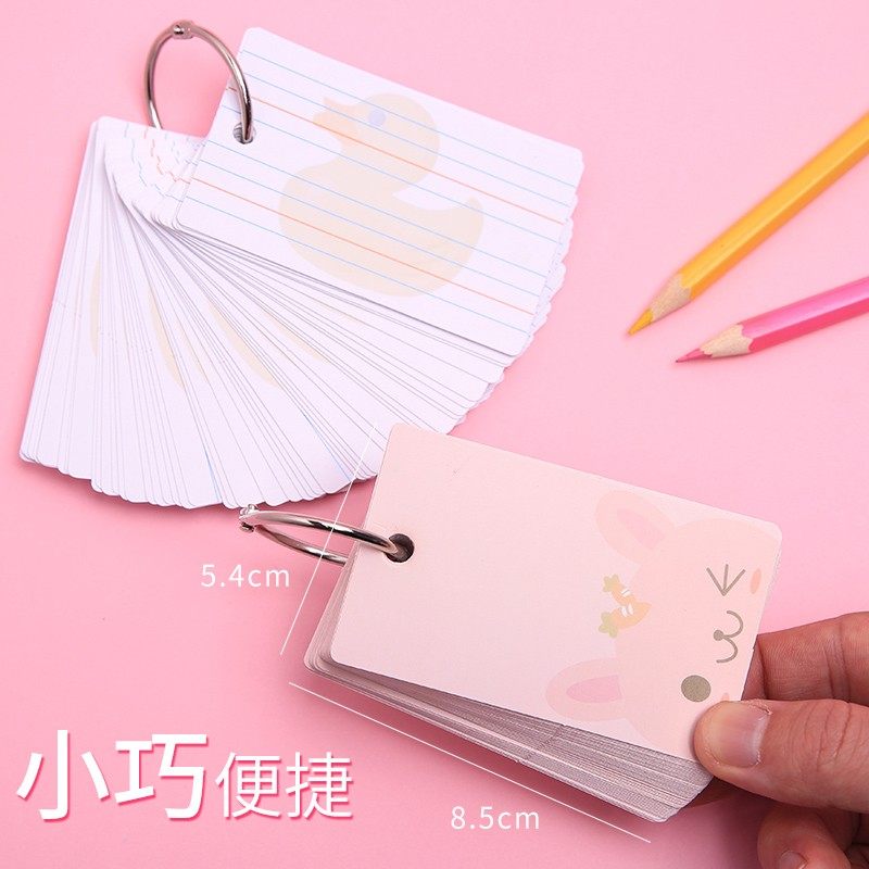网红空白单词留言小卡片便携识字自制卡片白色硬卡纸记背单词记忆环扣式打孔手写学习活页diy爱情兑换券背书