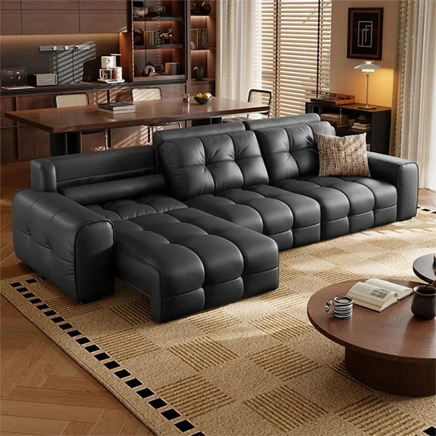 左右钢琴键沙发2025新款客厅零靠墙功能电动大象耳朵黑色沙发6080