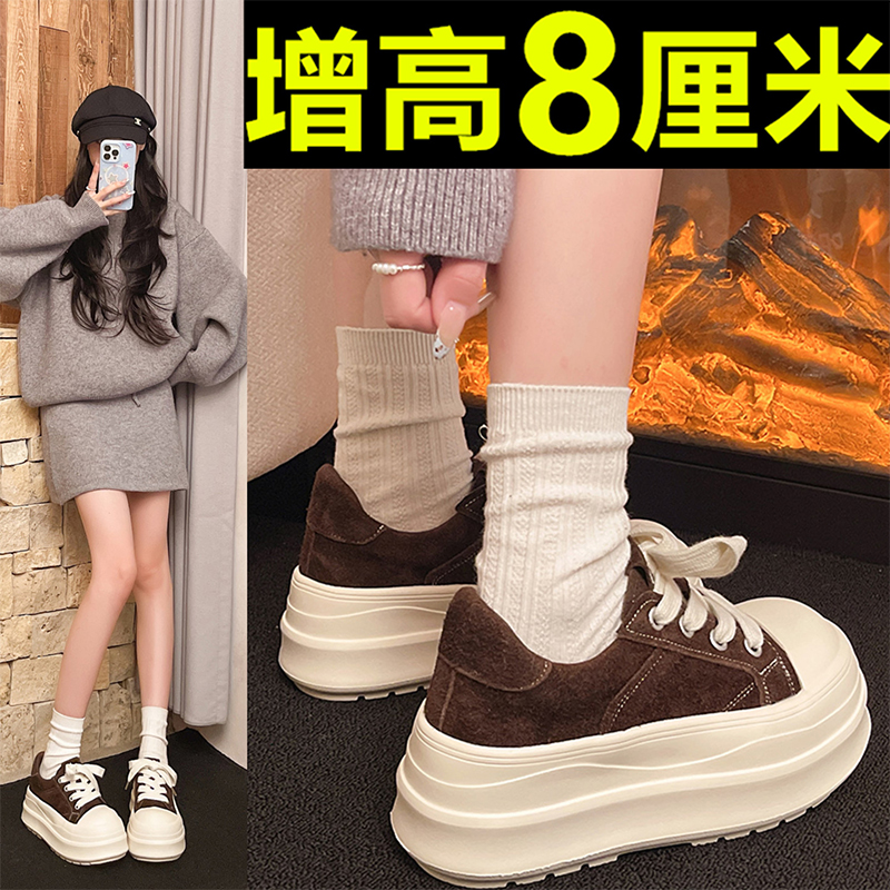 赵露思同款厚底板鞋女2025秋季新款小个子显瘦休闲单鞋松糕底圆头