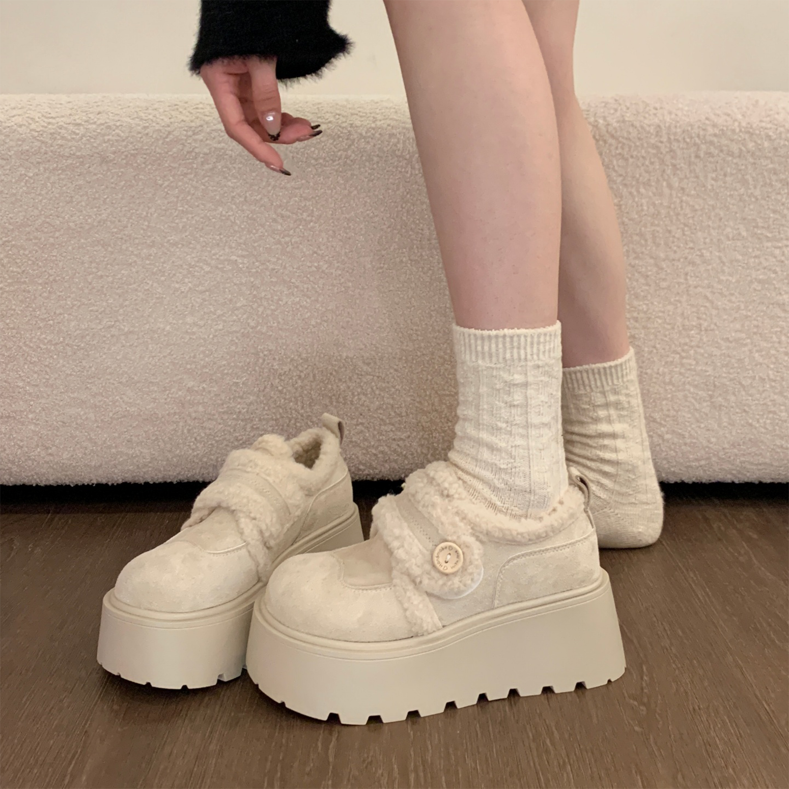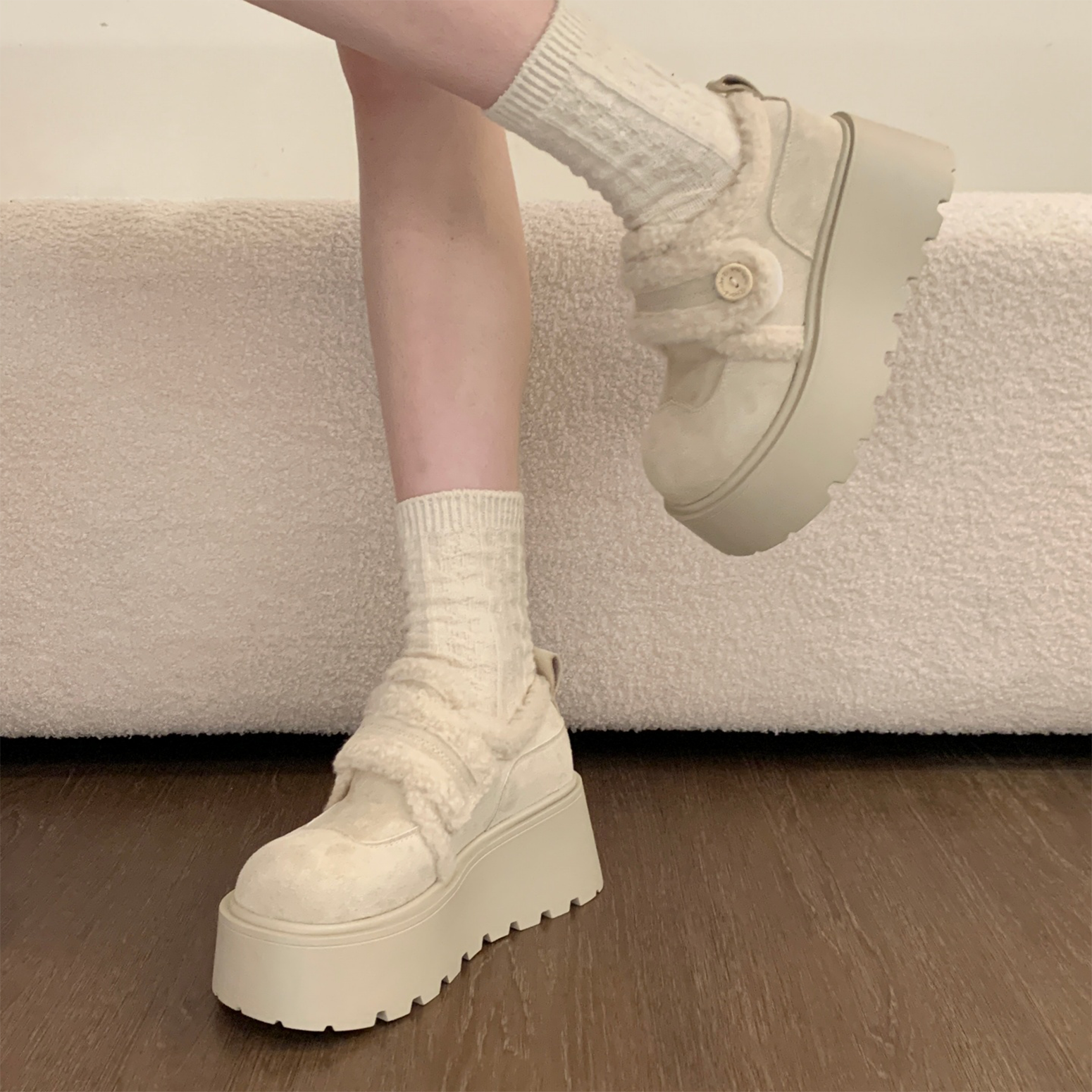 miu家厚底雪地靴女冬季真皮短靴羊毛侧拉链增高厚底加绒毛毛棉鞋