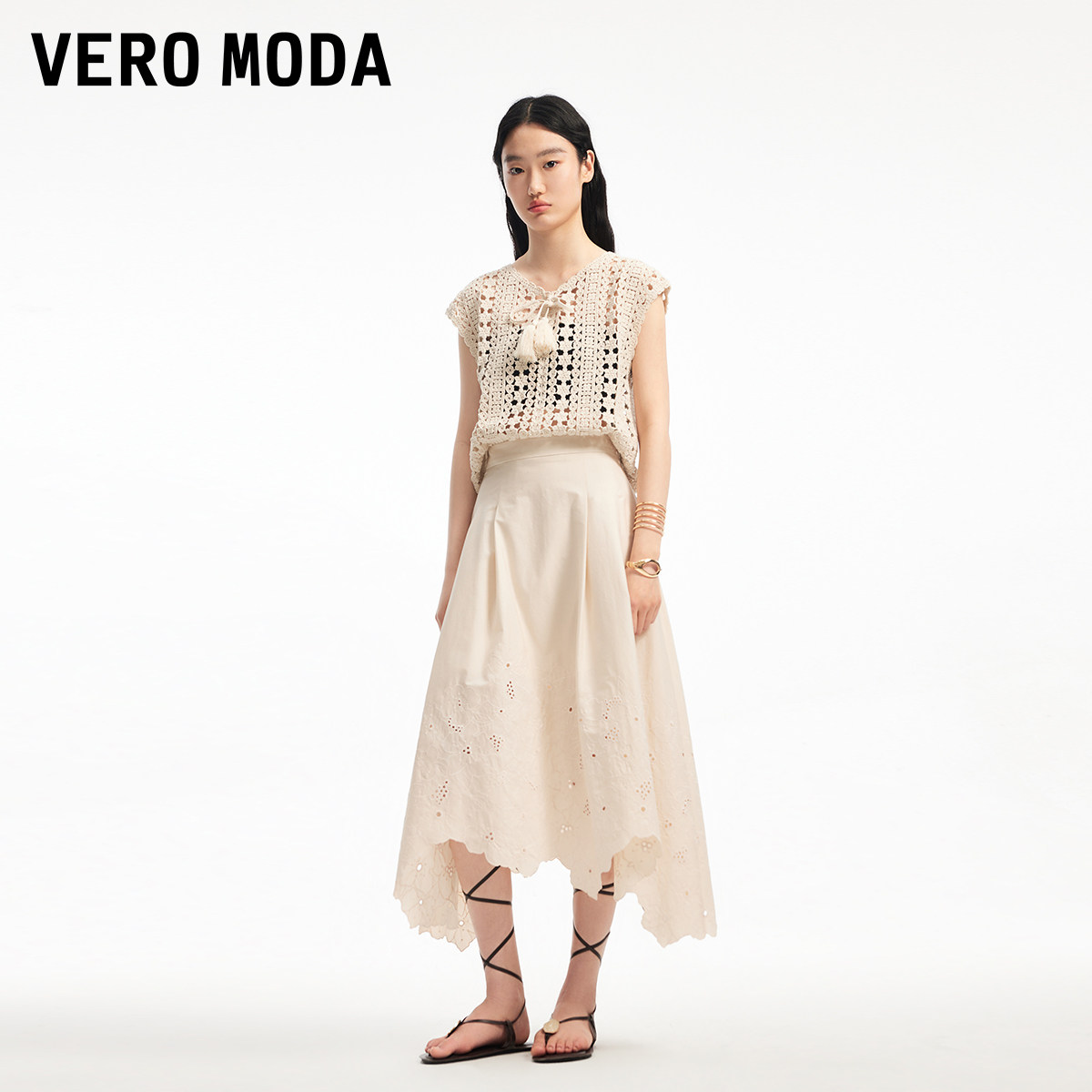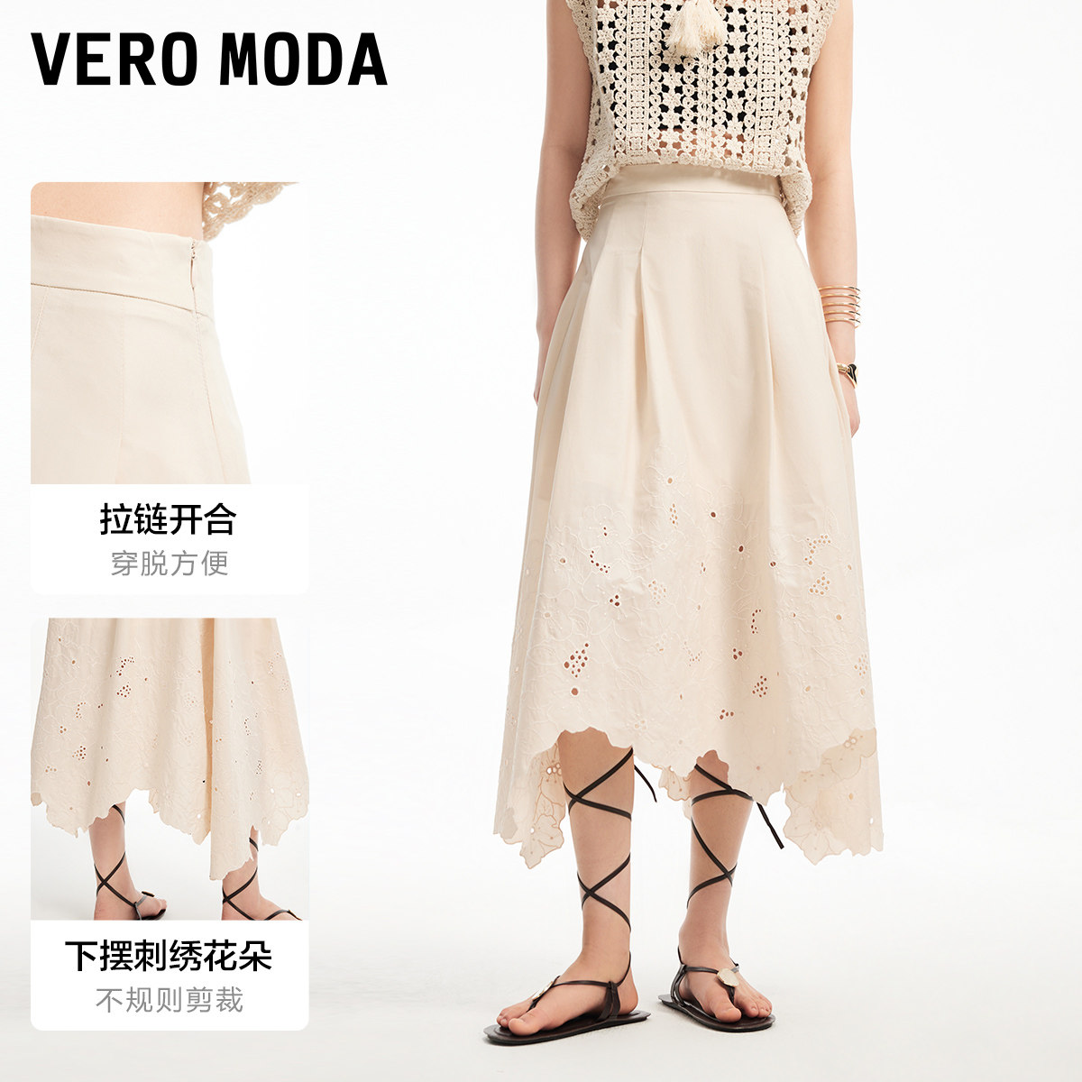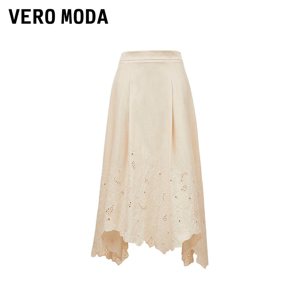 Vero Moda奥莱半身裙夏季新款优雅气质绣花棉质镂空度假裙子流行