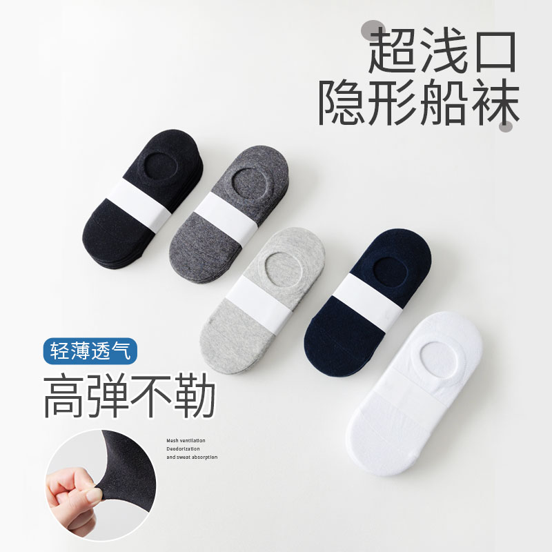 袜子男士船袜不掉跟夏季短袜纯色隐形袜运动纯棉防滑全棉防臭吸汗
