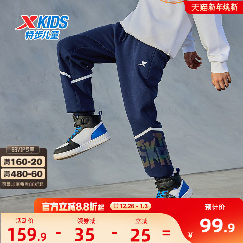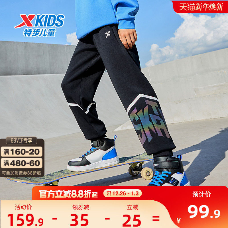 特步童装儿童滑板运动裤男童冬装2025秋冬款大童加绒裤子保暖长裤