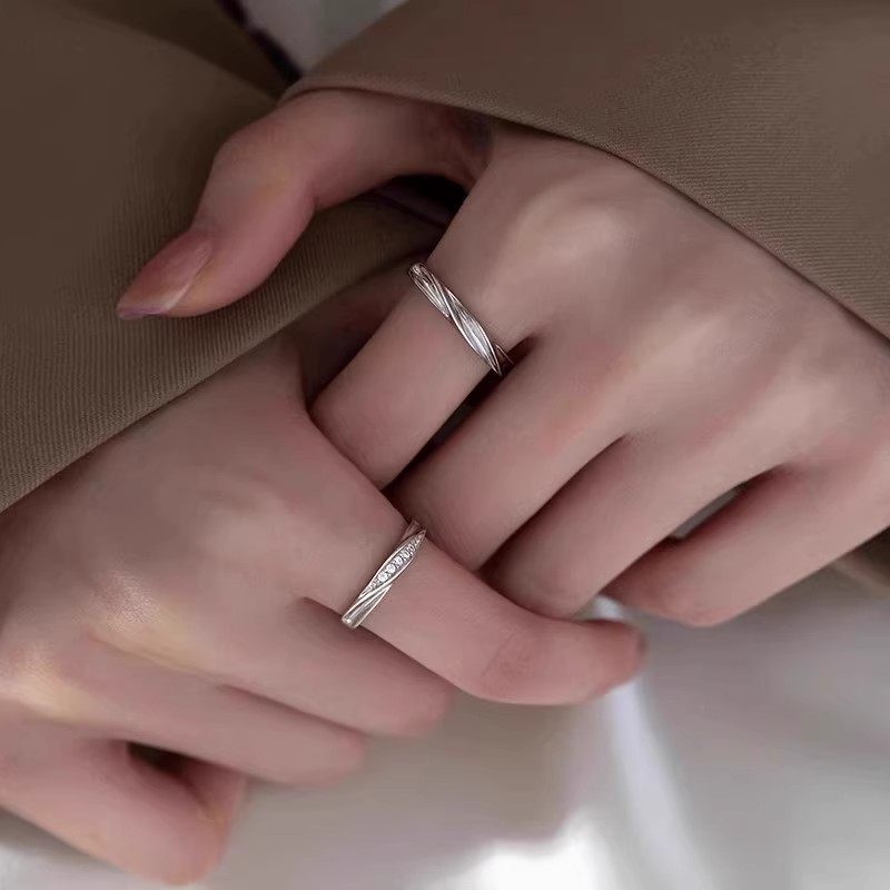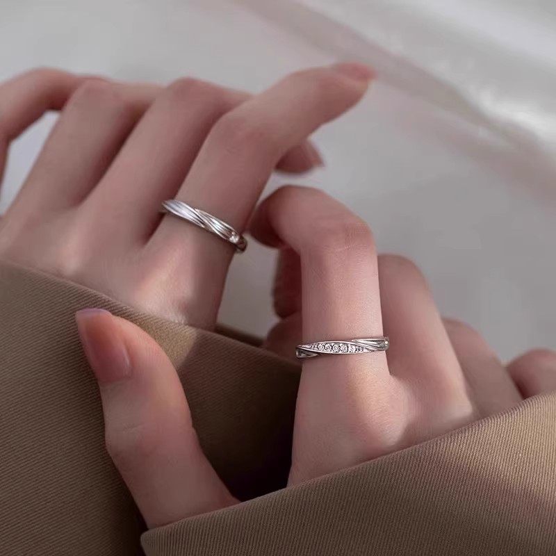 素圈情侣对戒指女开口戒莫比乌斯指环食指戒礼物情侣款足银可调节
