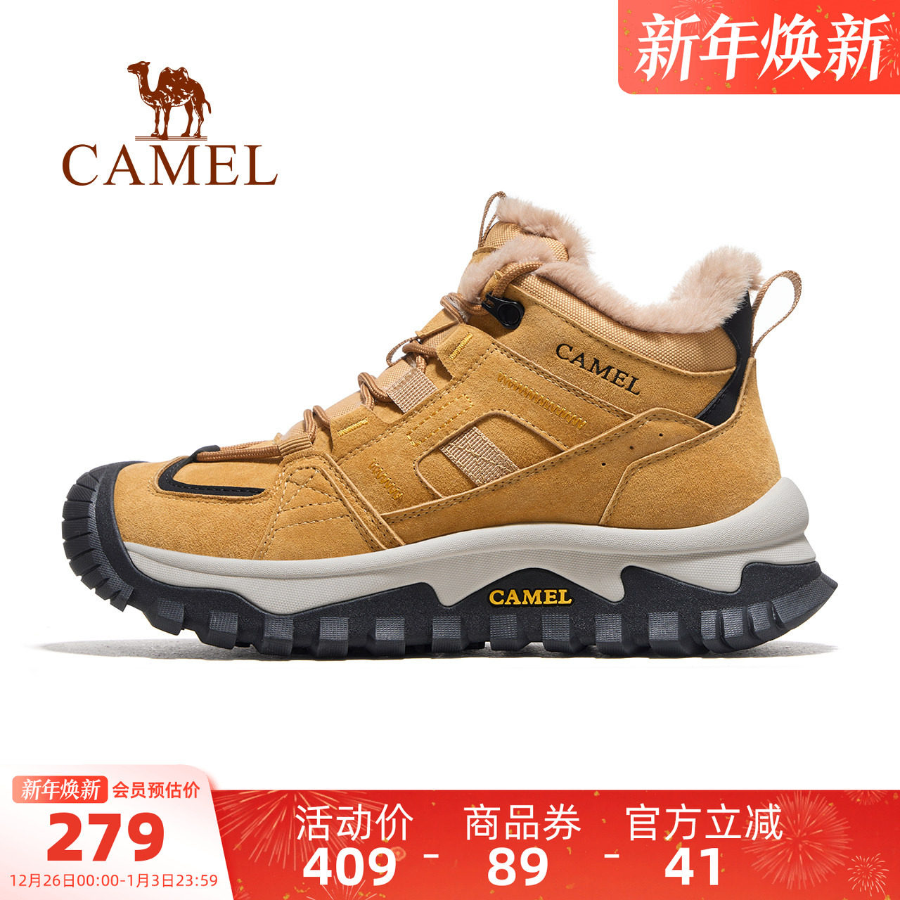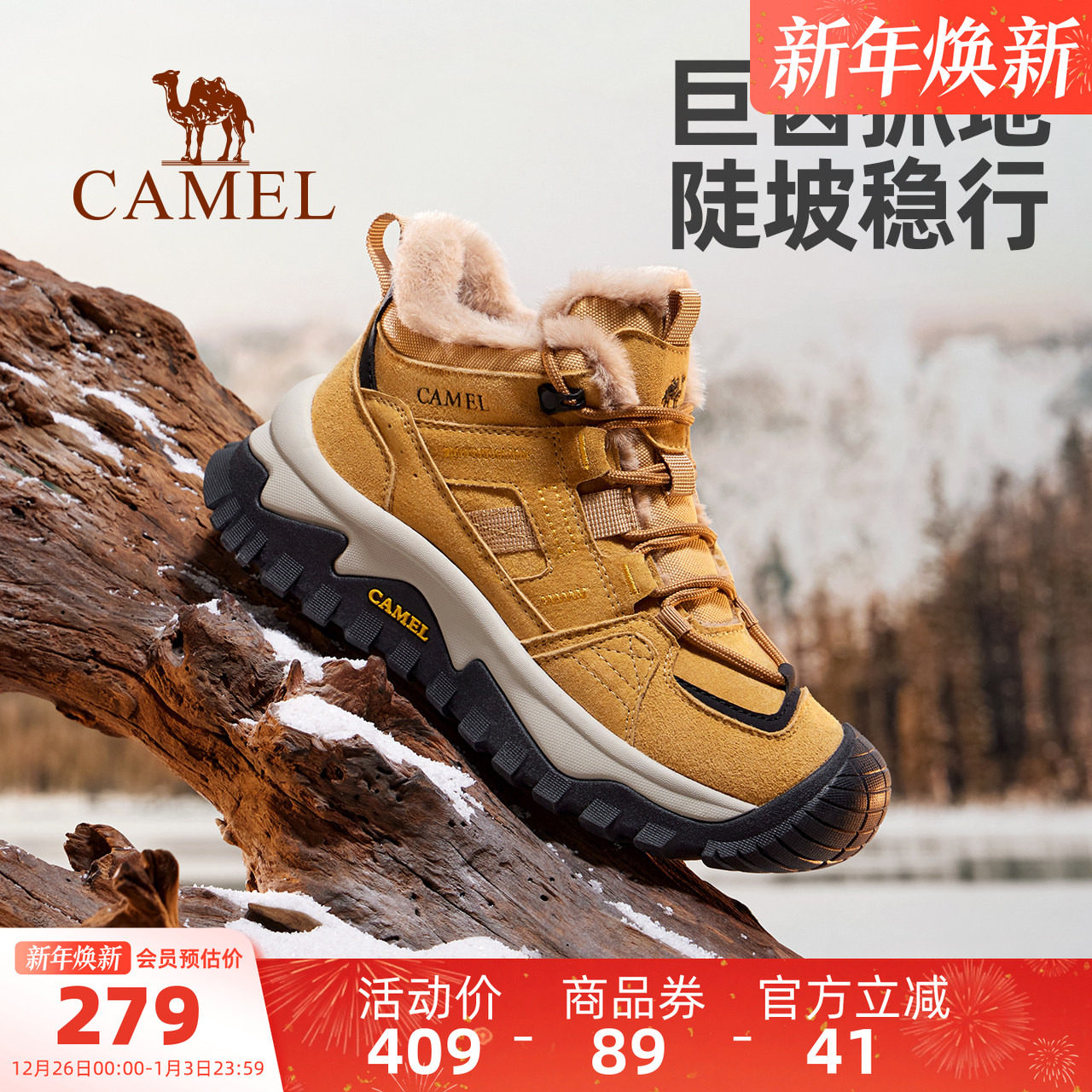 骆驼男鞋高帮鞋2025冬季加绒加厚保暖雪地靴男户外徒步登山棉鞋女