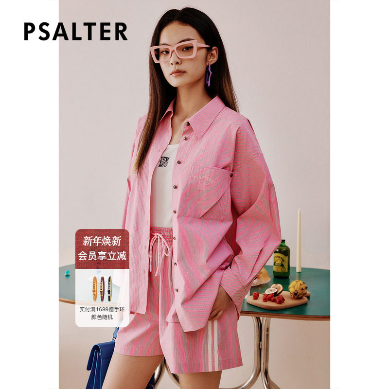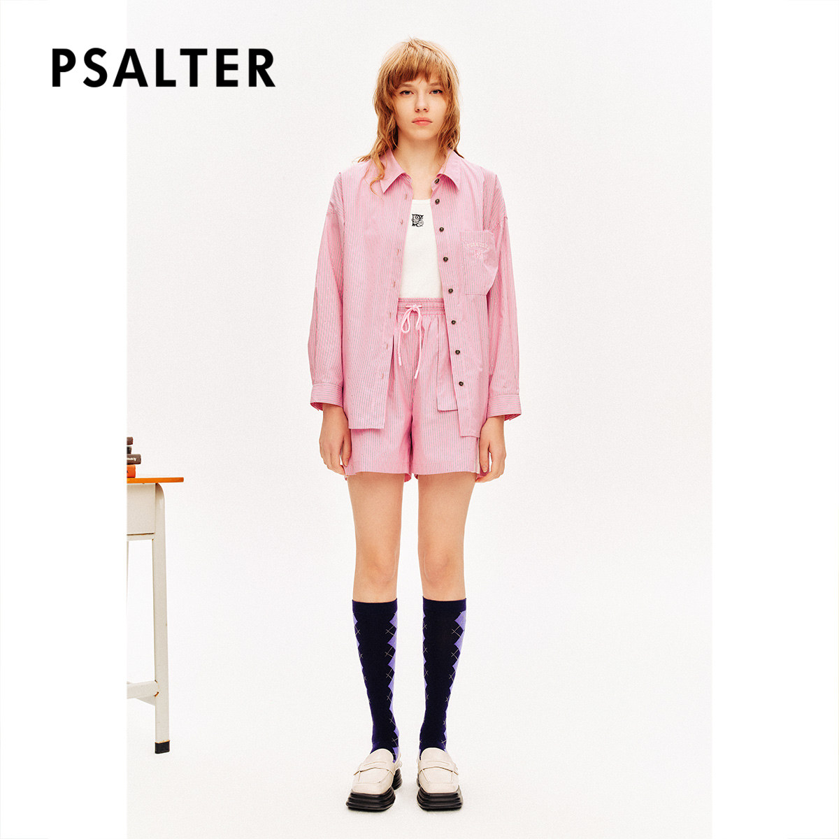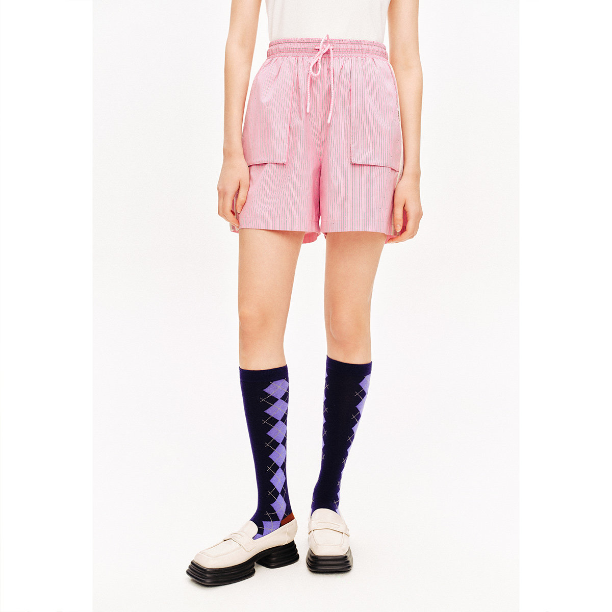 PSALTER诗篇系带松紧腰学院风烫钻条纹短裤休闲裤夏款