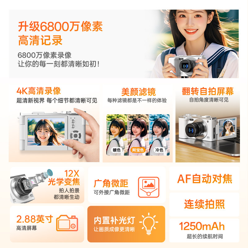 翻转屏自拍 伸缩镜头 4K录像 可传手机电脑