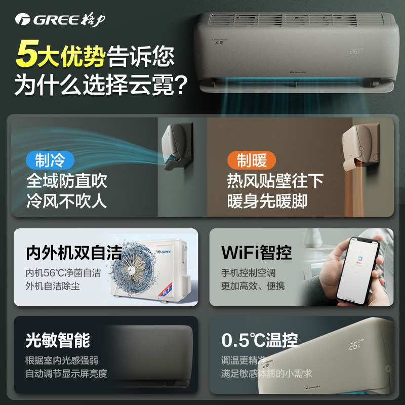 Gree/格力空调大1.5匹一级能效节能智控变频挂机云霓官方旗舰店