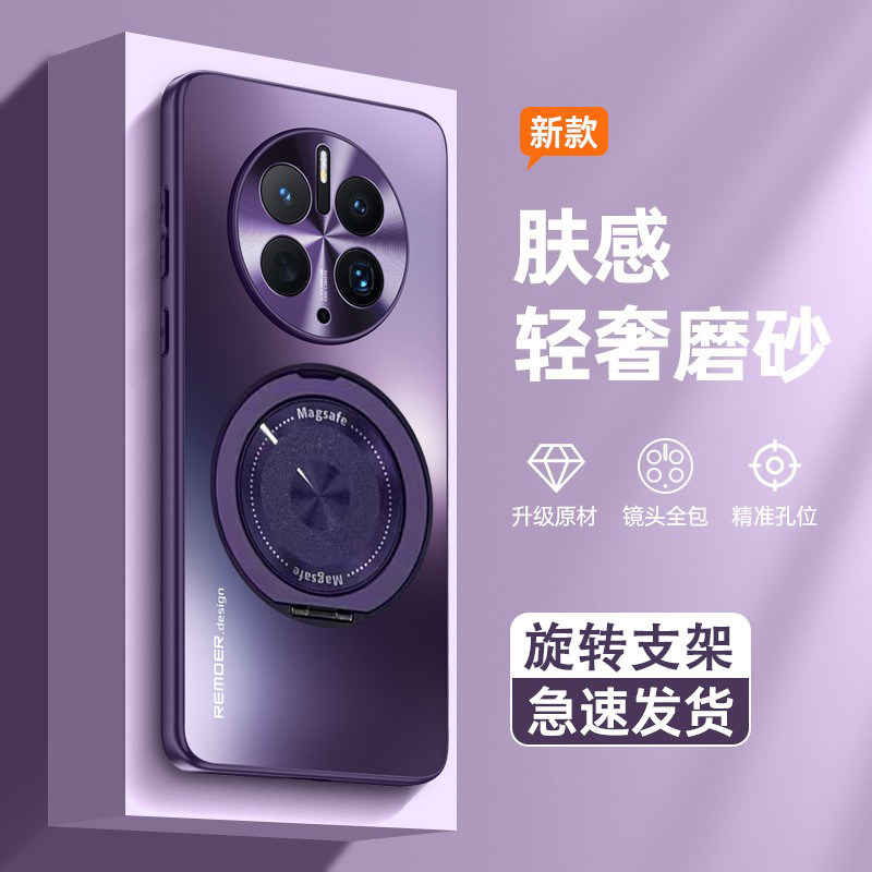 适用华为mate50pro手机壳新款mate50磨砂金属360旋转磁吸支架保护套mate50E全包防摔70高级时尚情侣80pro外壳