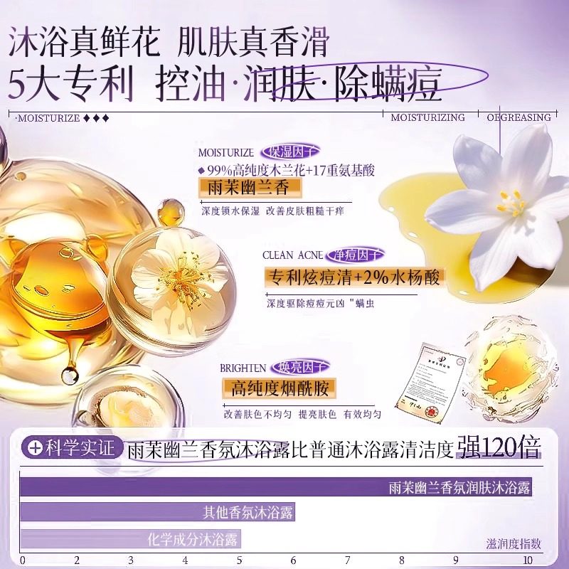 幽兰香氛沐浴露持久留香72小时乳液控油除螨祛痘女男士官方正品牌