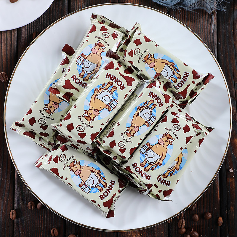 俄罗斯进口康吉大奶牛威化饼干巧克力牛奶零食网红500克夹心