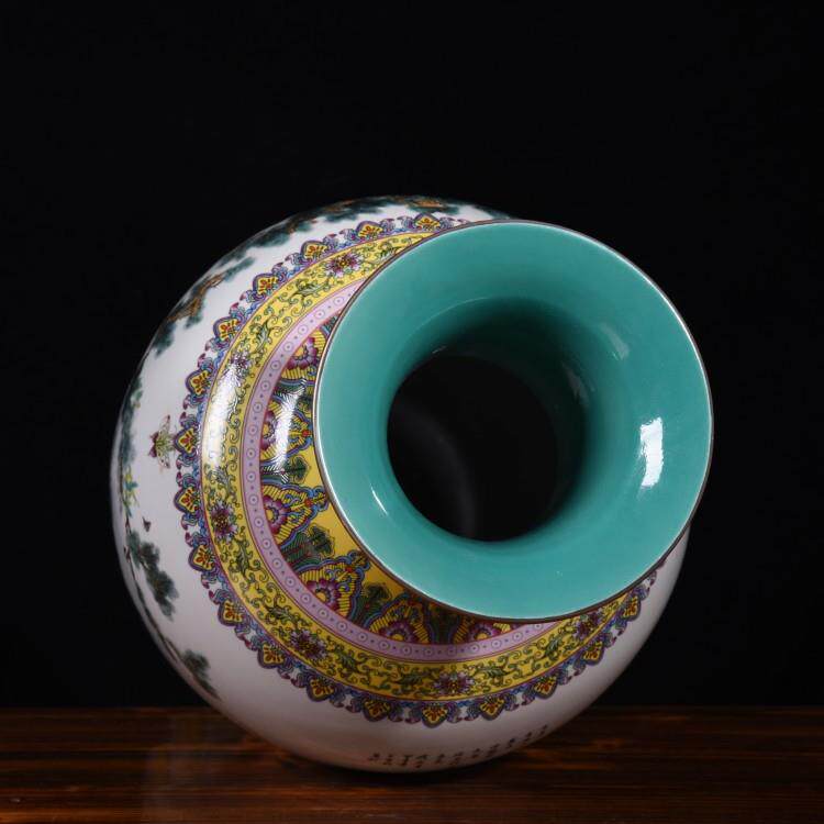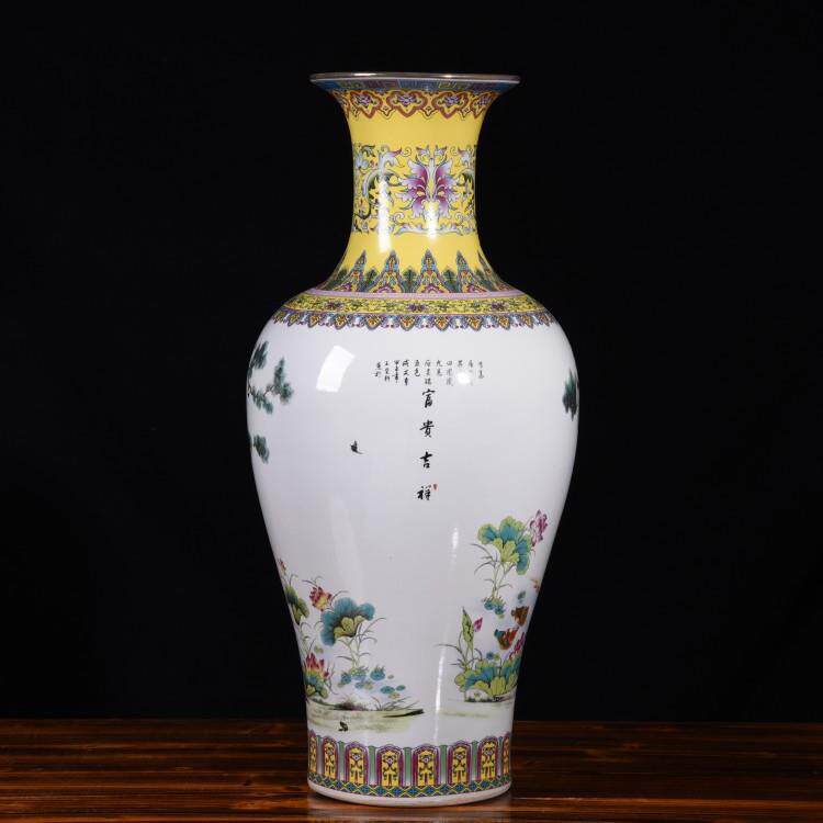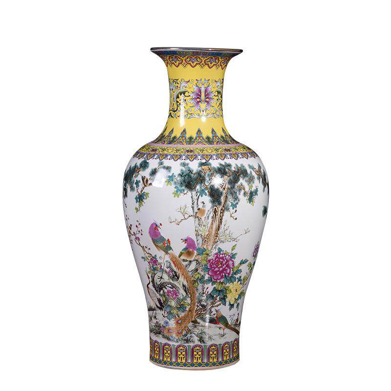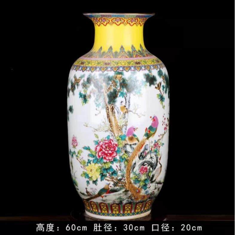 仿古中式描金粉彩牡丹百鸟朝凤鱼尾瓶落地大花瓶玄关家饰客厅摆件