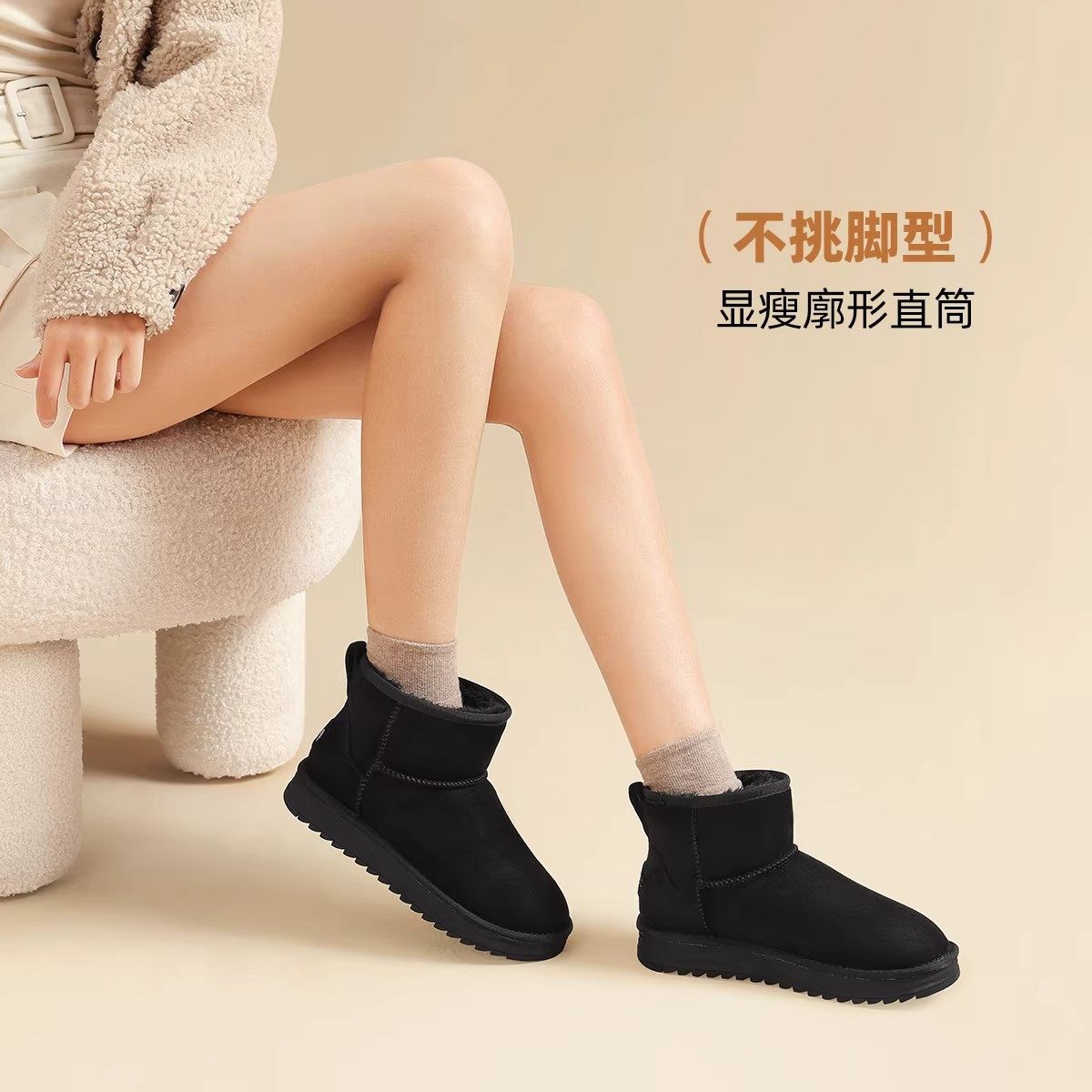 油叽叽~真皮羊毛雪地靴女冬季加绒加厚保暖棉靴厚底增高短筒靴子
