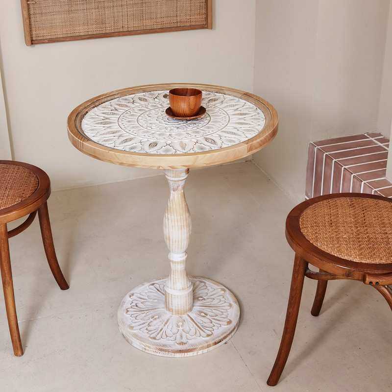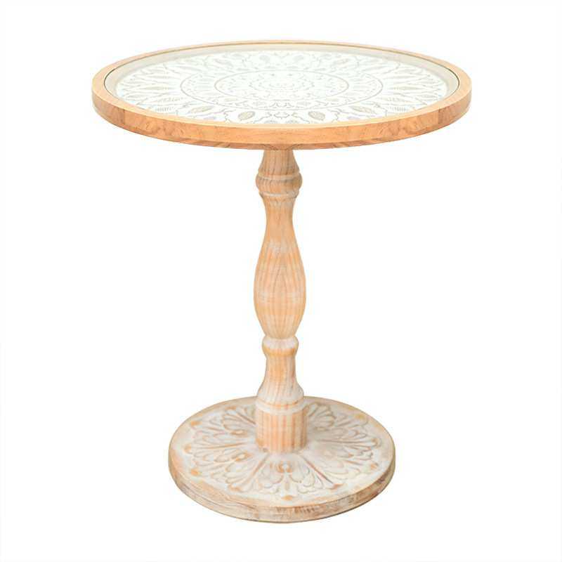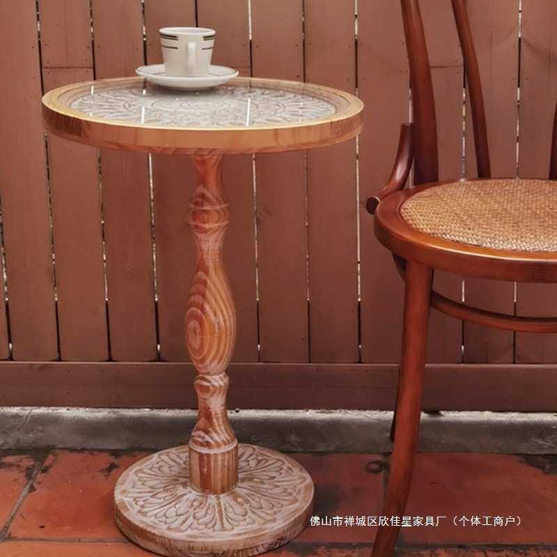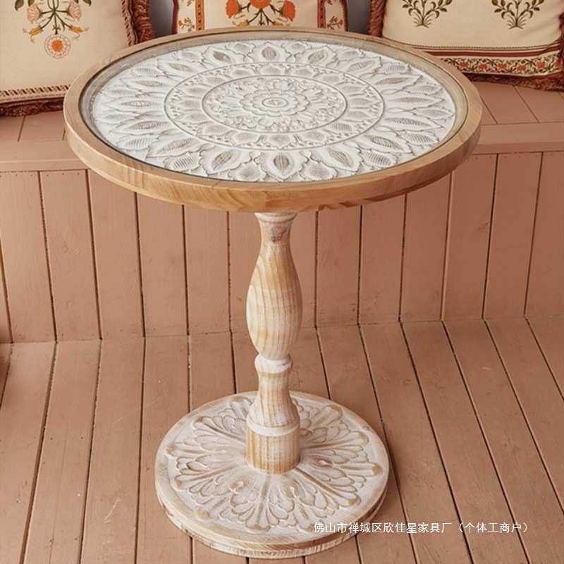 法式复古沙发边几实木中古角几休闲小圆几咖啡桌民宿雕花茶几儿童