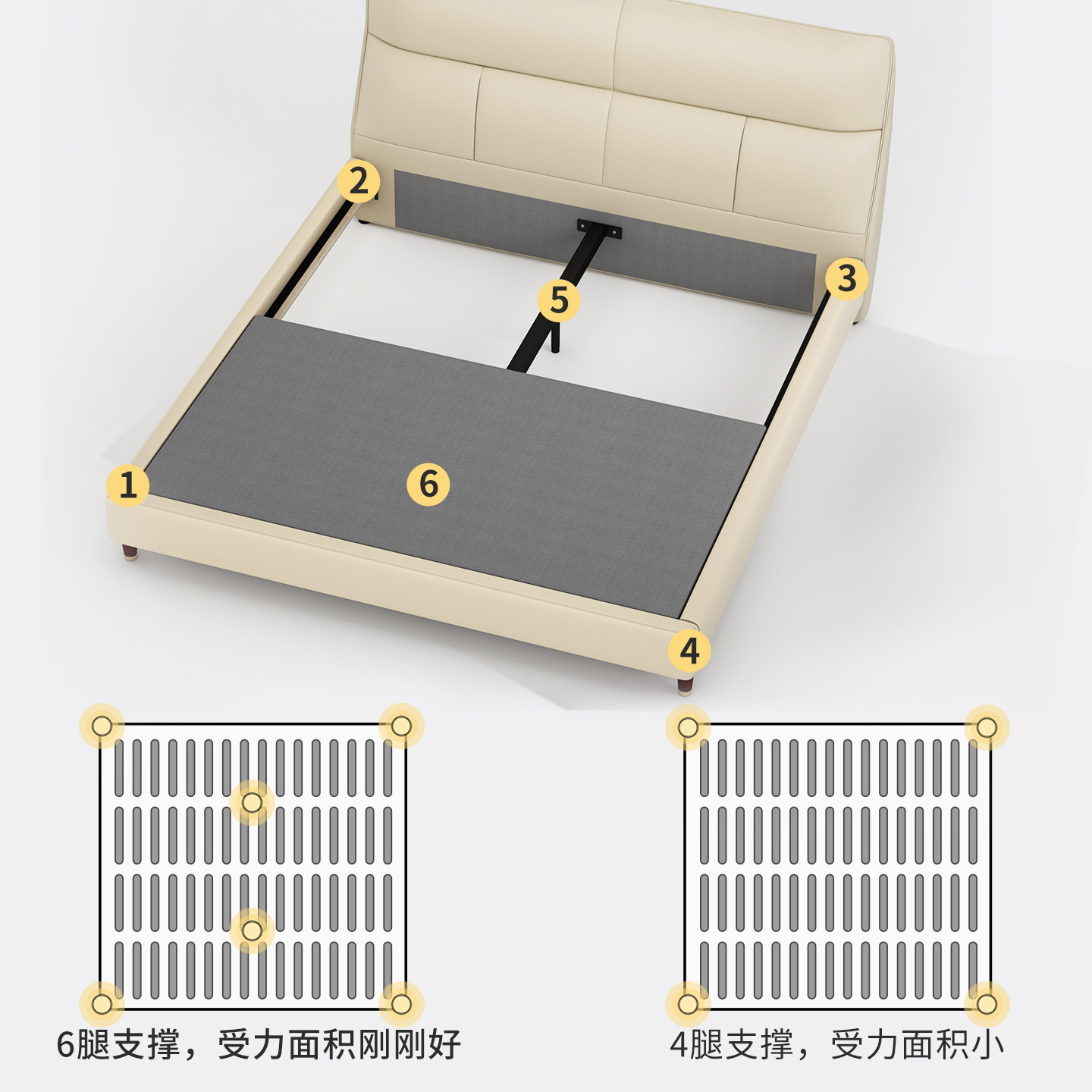 雅兰轻奢真皮床现代简约主卧家具靠背婚床1.5米双人实木床架 奥汀