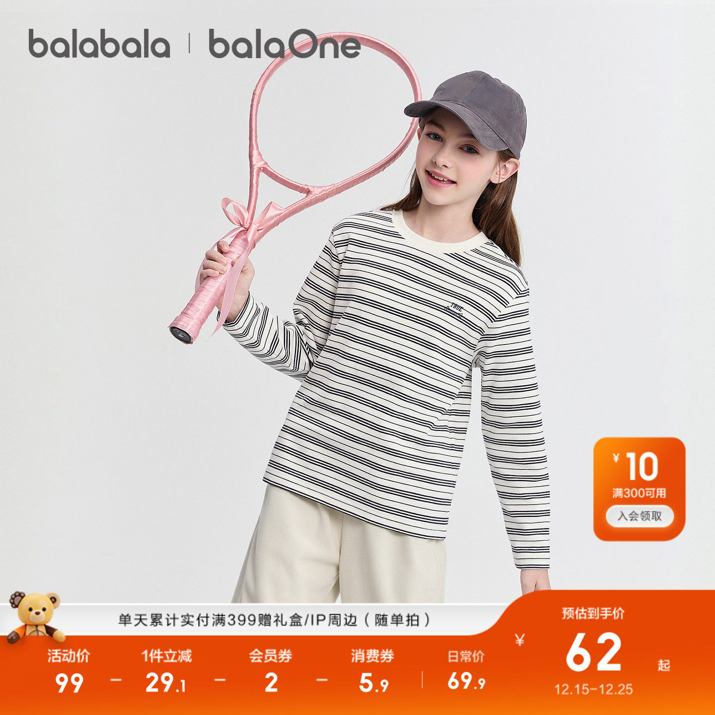巴拉巴拉童装儿童长袖t恤男童女童2025新款秋冬装条纹打底衫上衣