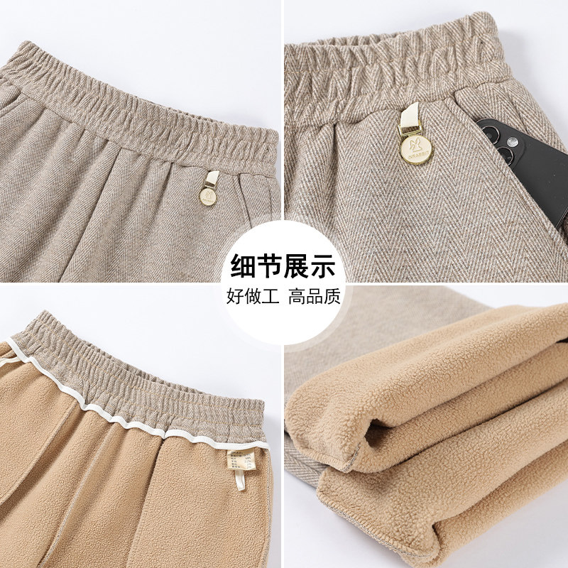 妈妈裤子冬装加绒加厚2025新款阔腿直筒高腰休闲裤中老年女毛呢裤