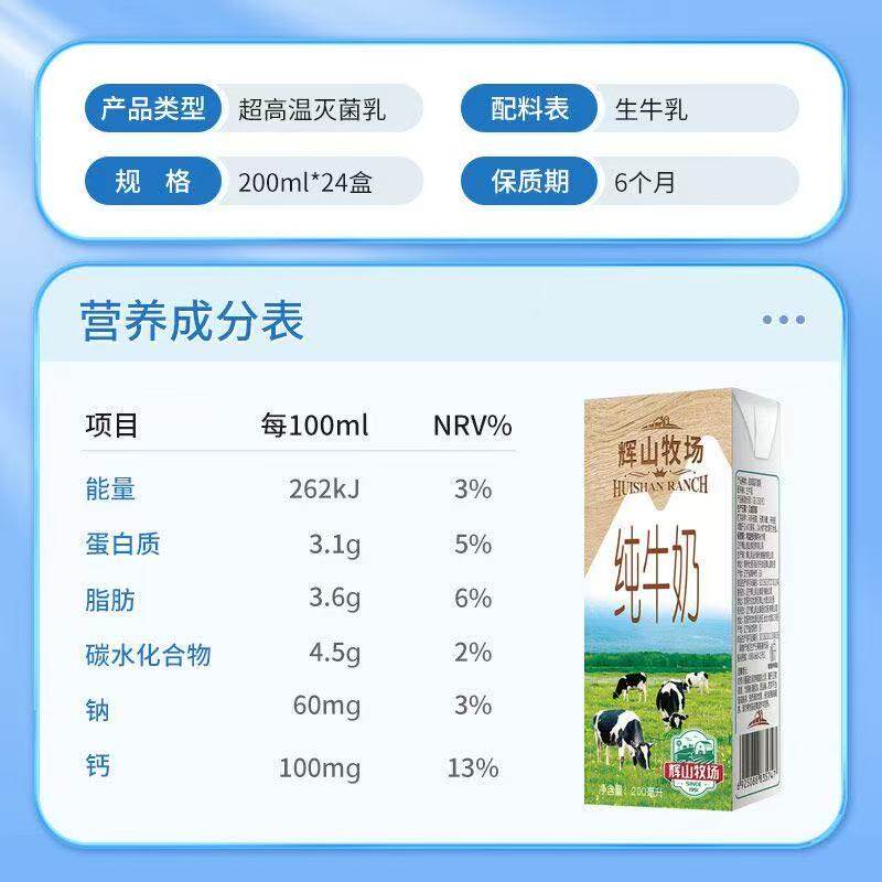 辉山纯牛奶200ml*24整箱营养乳业儿童学生早餐牛奶年货节常温原生