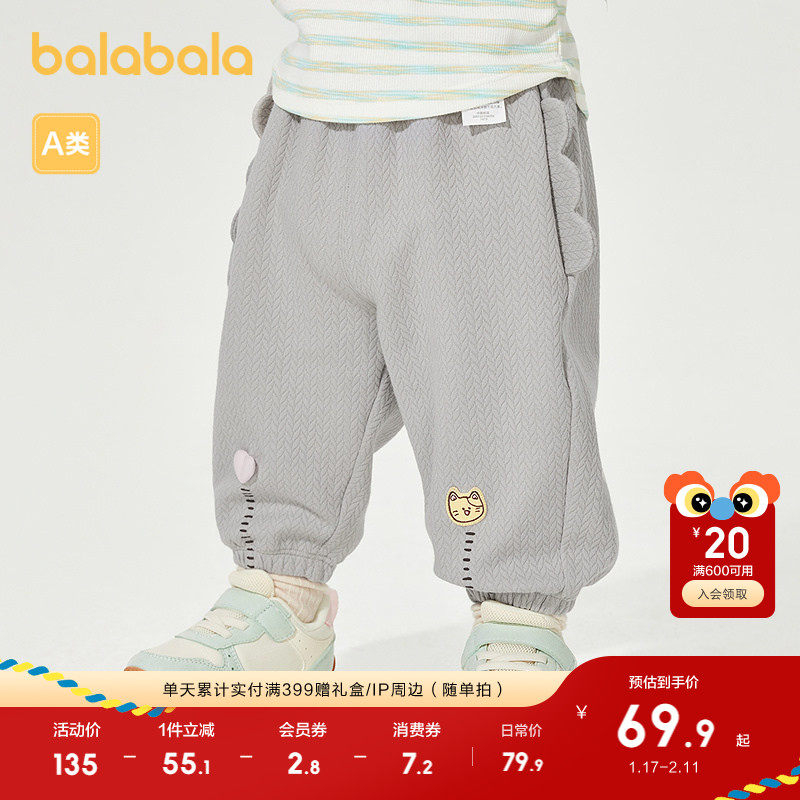 巴拉巴拉童装女童男童长裤2025新款春秋装宝宝休闲裤子小童刺绣萌