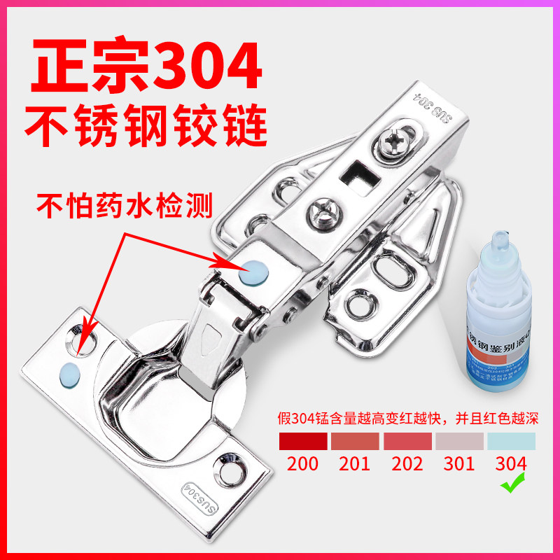 304不锈钢缓冲阻尼铰链橱柜门五金折叠飞机合页液压全盖柜子衣柜