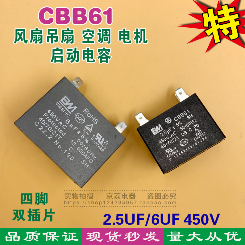 风扇吊扇 空调 电机 启动电容CBB61 2.5/3/4/5/6uf 450V四脚 插片