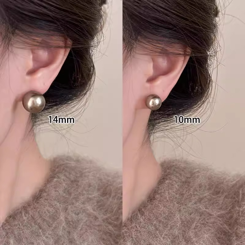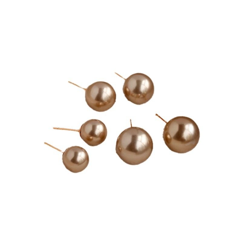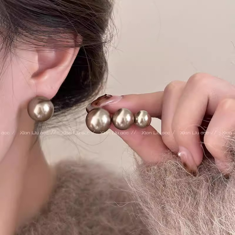 复古摩卡金棕色珍珠耳钉2025年新款爆款耳环轻奢高级感气质耳饰女