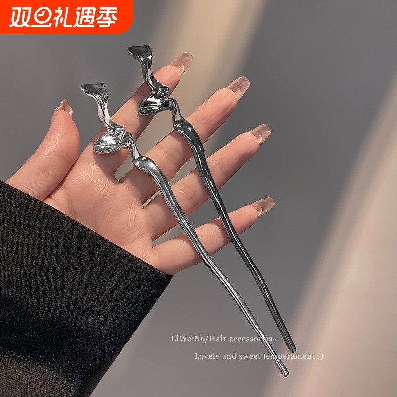 简约现代线条金属发簪女生高级感盘发发钗新中式甜酷古风发饰簪子