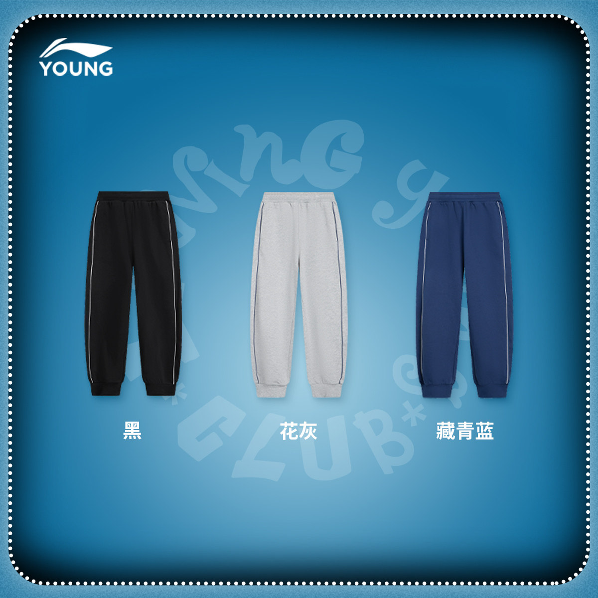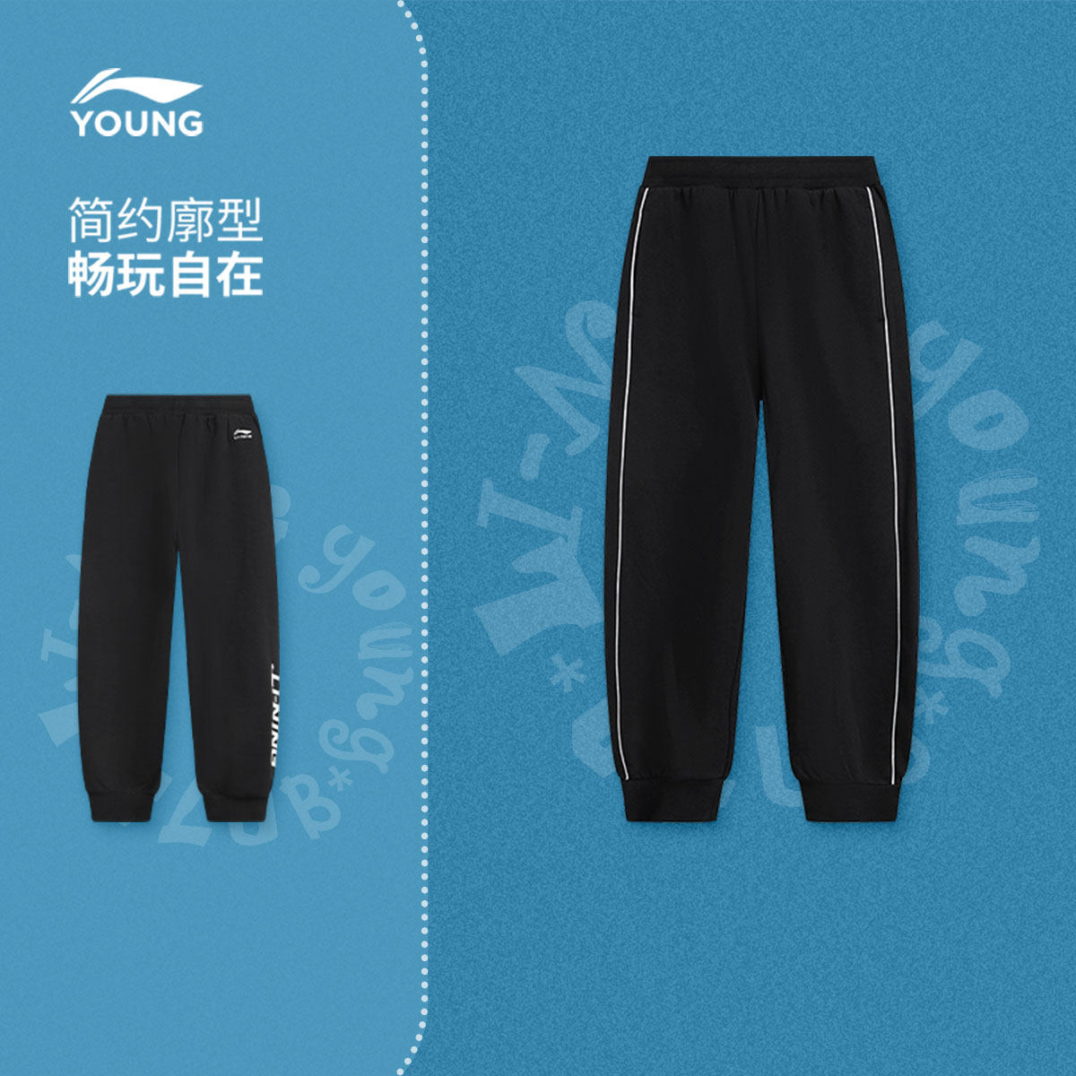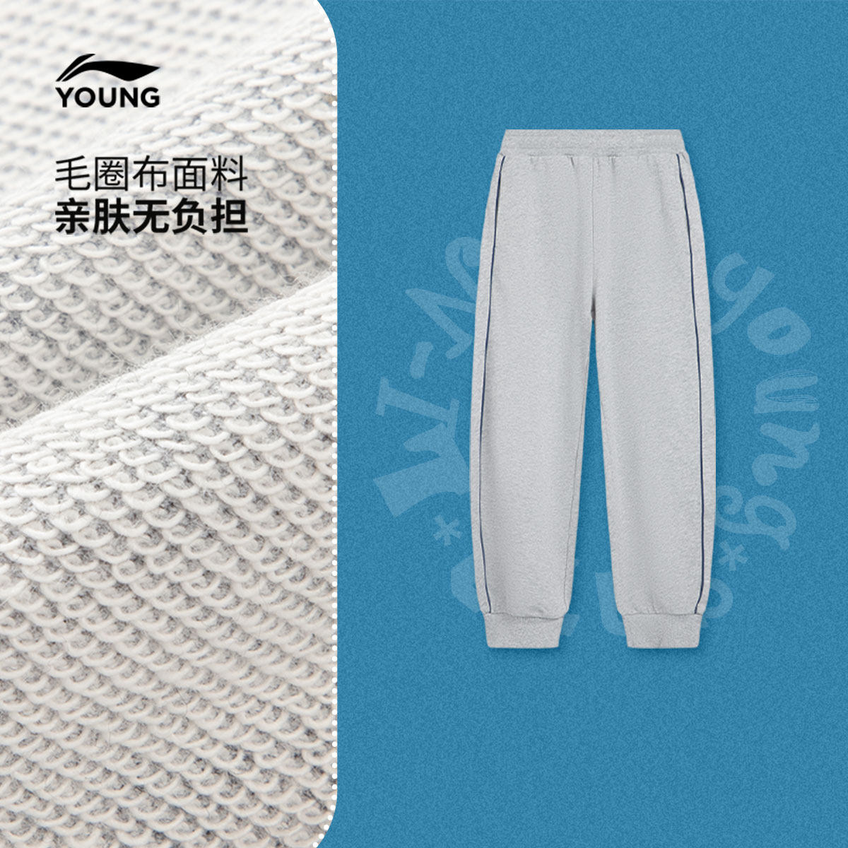 李宁童装卫裤男大童运动生活系列青少年春季休闲毛圈束脚针织童装