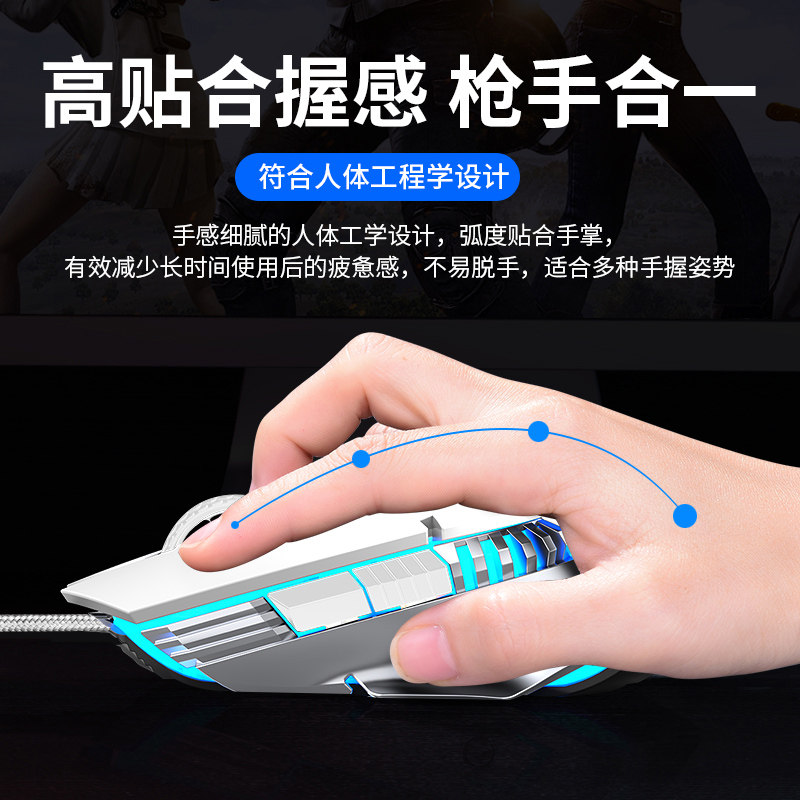 英菲克PW1有线鼠标静音游戏电竞机械宏办公usb台式笔记本电脑专用