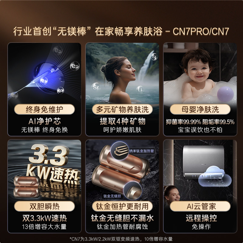 [换新补贴]卡萨帝电热水器官方家用双胆扁桶变频富锶无镁棒CN7pro