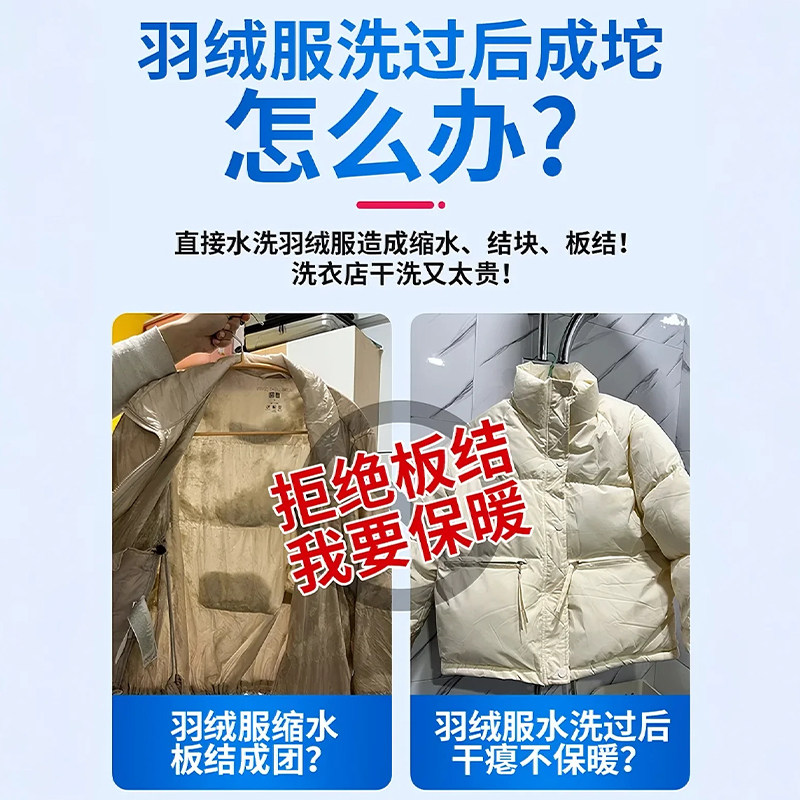 羽绒服清洗剂蓬松洗涤清洁专用洗衣液机洗膨松干洗去污渍神器洗后
