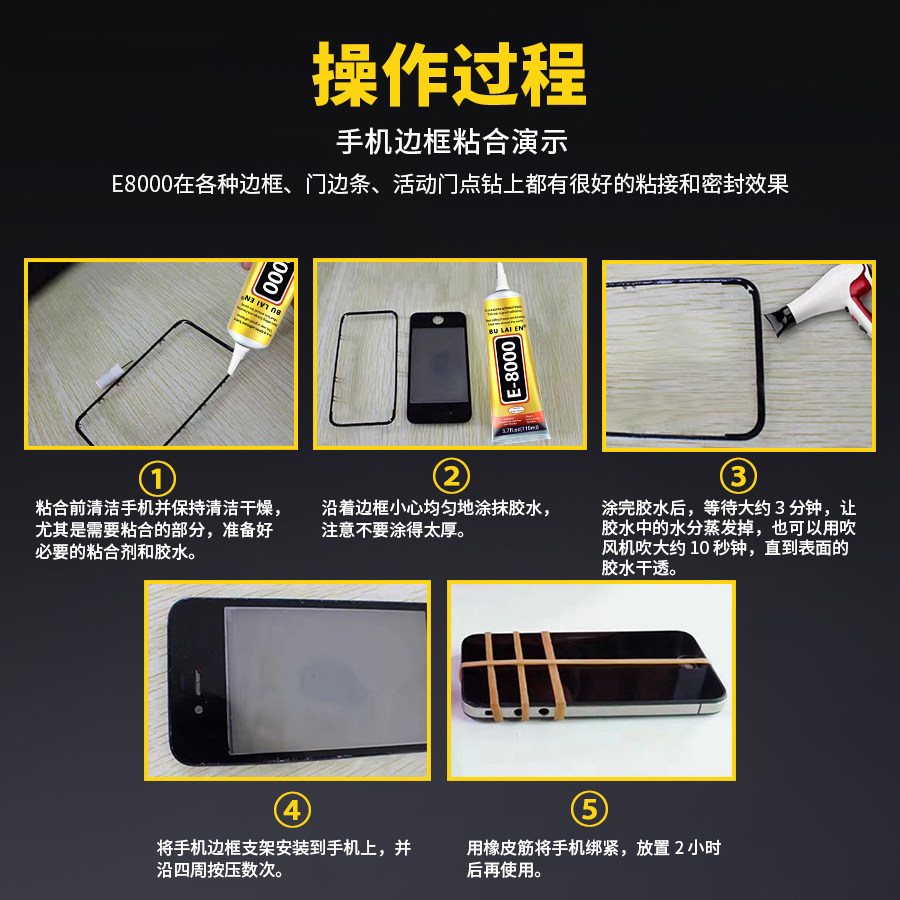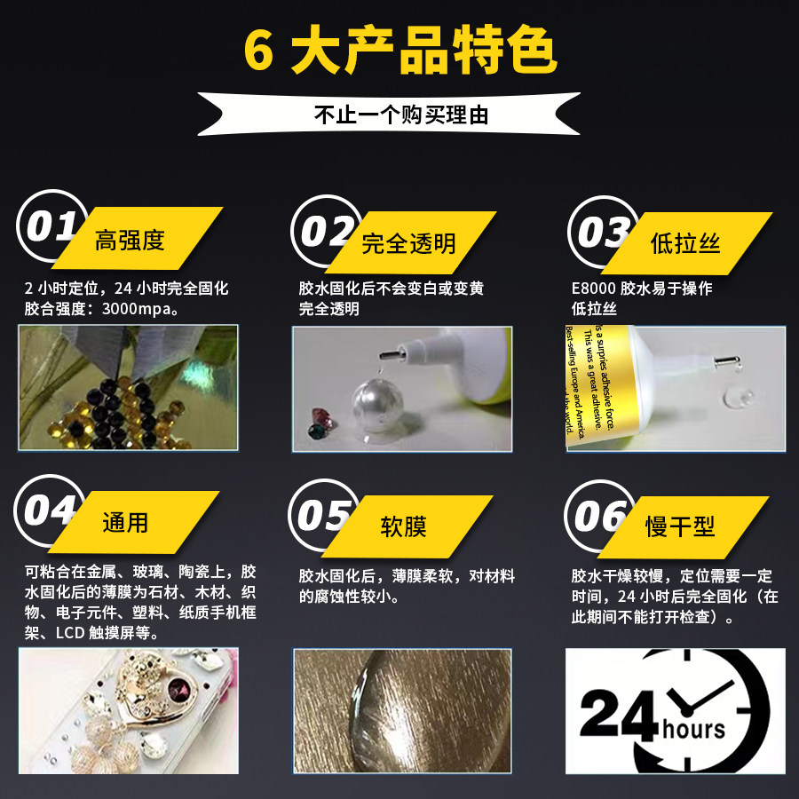 高级不伤手无痕胶水DIY饰品E8000强力透明软胶比B6000更强粘合力胶水手机屏维修珠宝首饰手工塑料金属干花