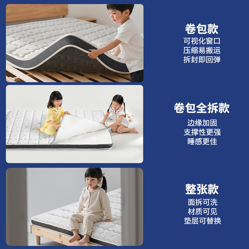 海马亦言儿童卷包床垫家用乳胶薄款独立弹簧软硬12/15CM名牌定制